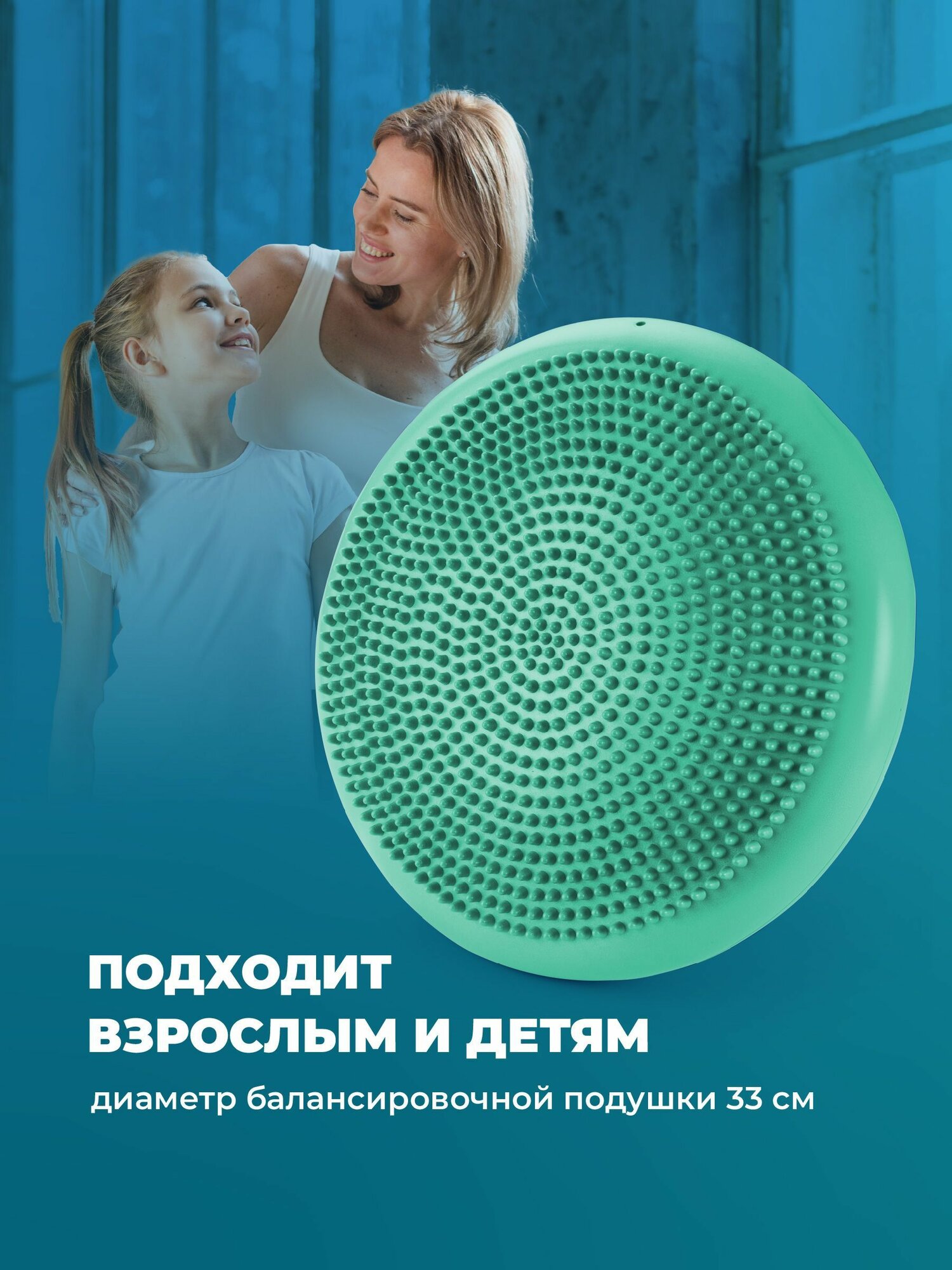 Подушка балансировочная с насосом, Shark Fit, Массажная подушка / Подушка для йоги и гимнастики/ Бирюзовая, 33 см