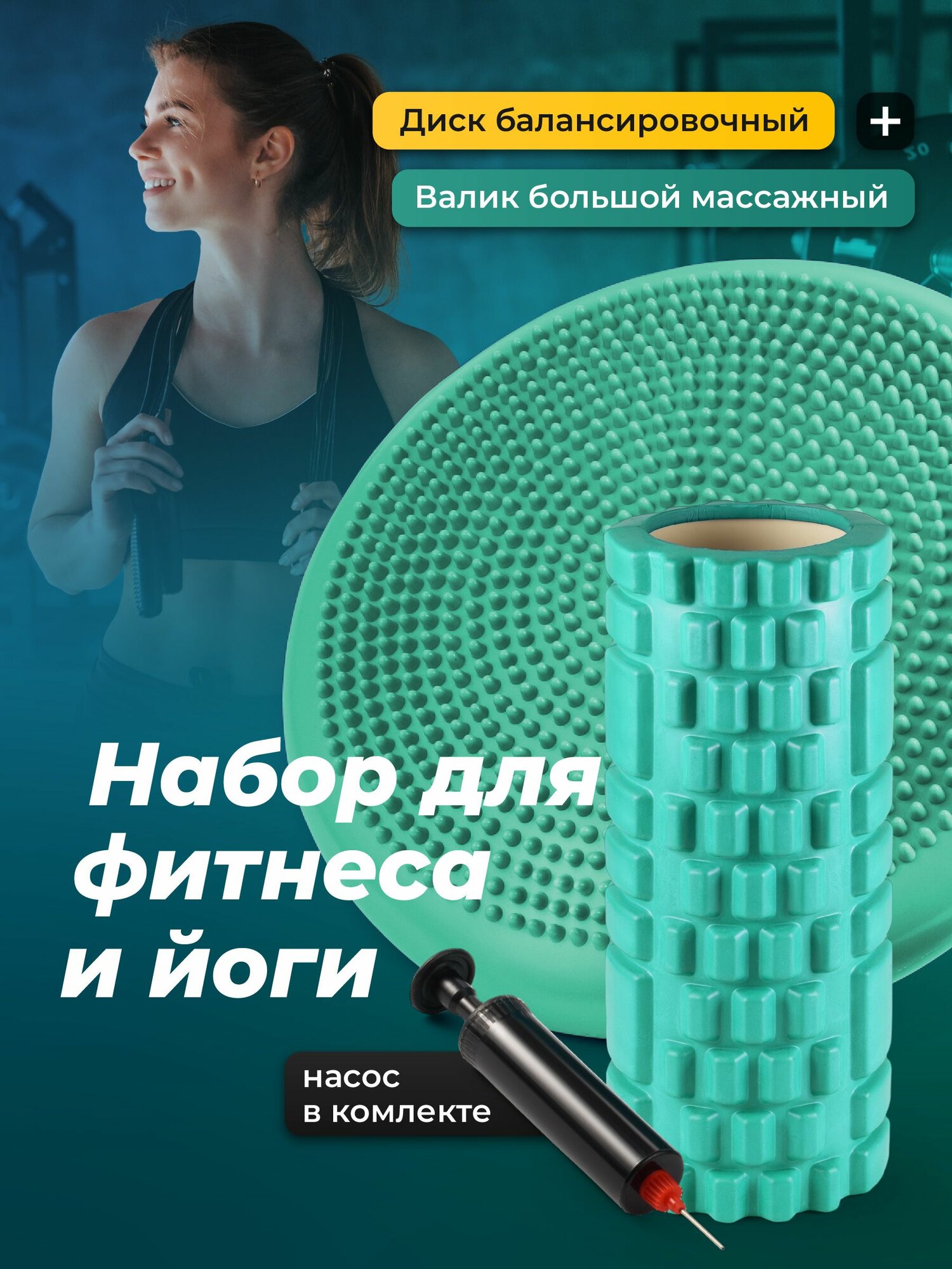 Подушка балансировочная с насосом, ролик массажный Shark Fit интересное: