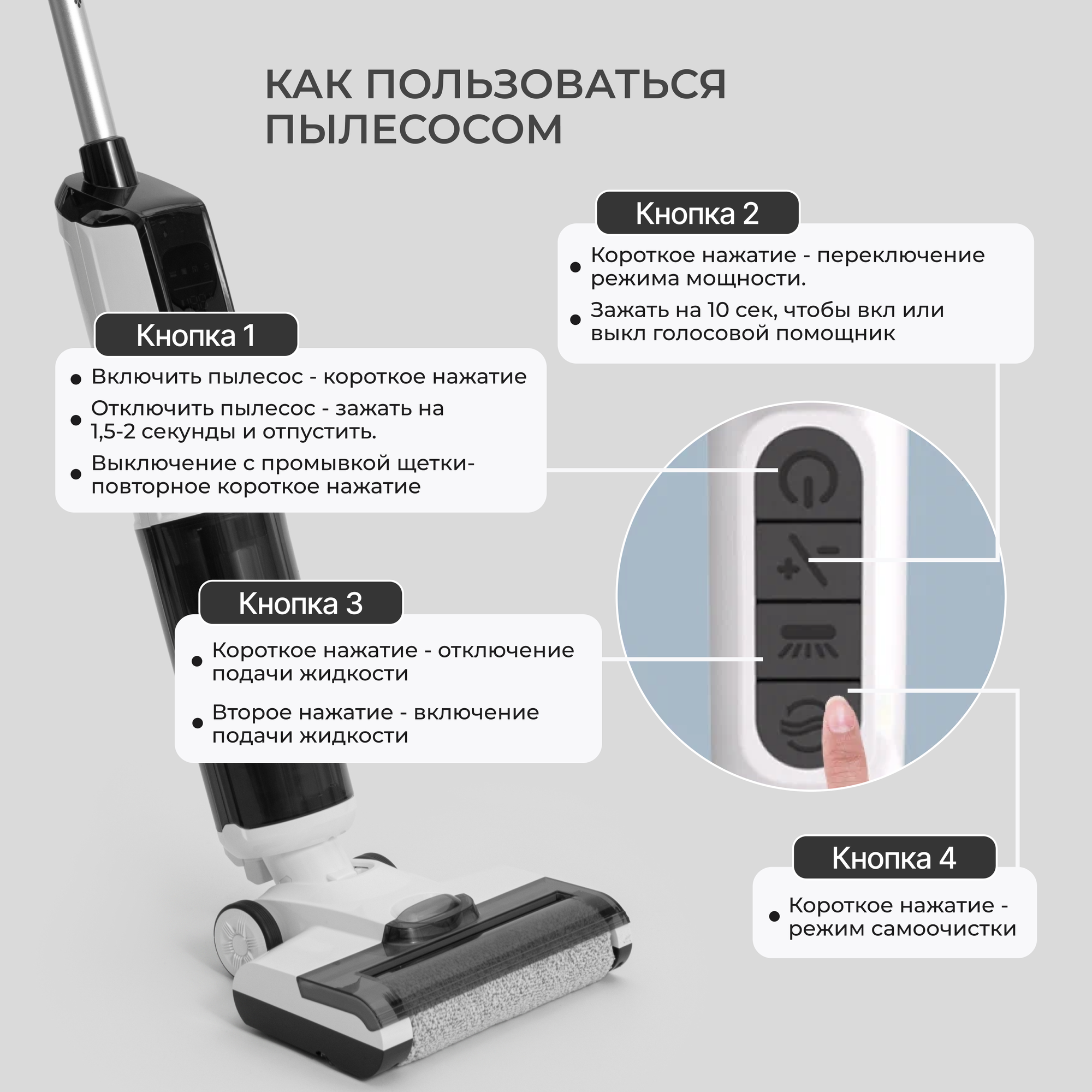 Пылесос моющий - Беспроводной - функция самоочистки - TechniQ 3 в 1. интересное: