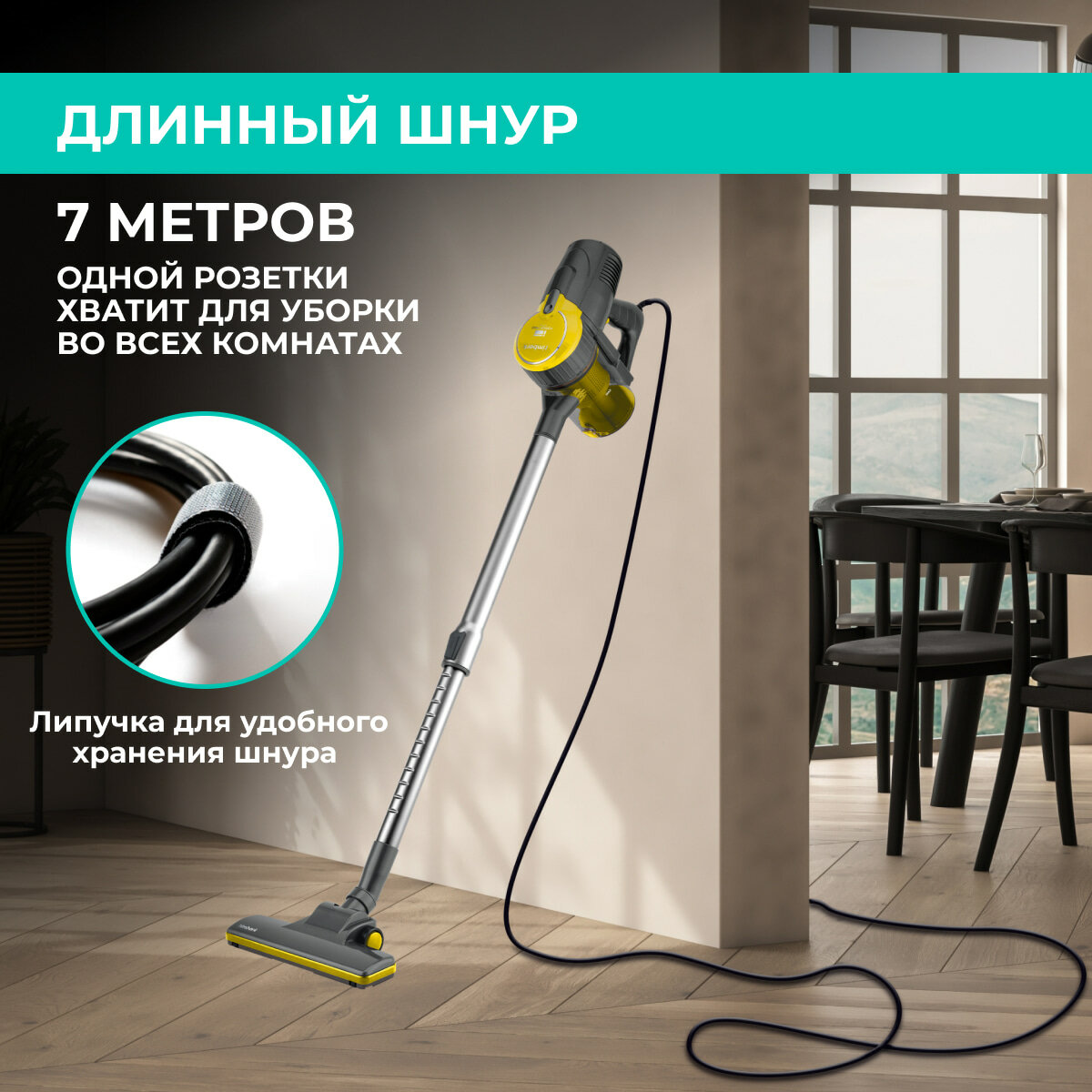 Вертикальный пылесос проводной Timberk T-VCH-53, шнур 7 метров