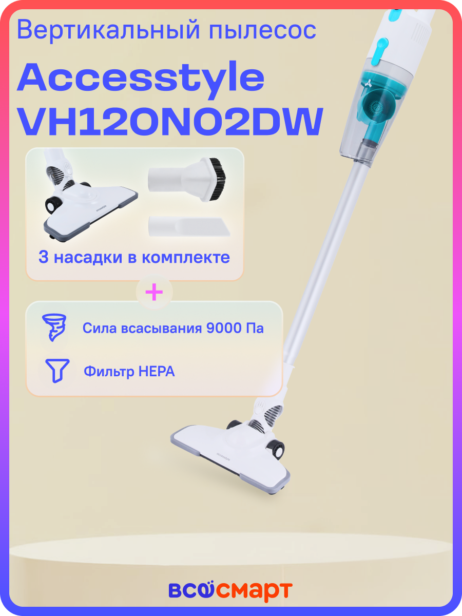 Пылесос беспроводной accesstyle vh120n02dw контейнер 1,2л белый