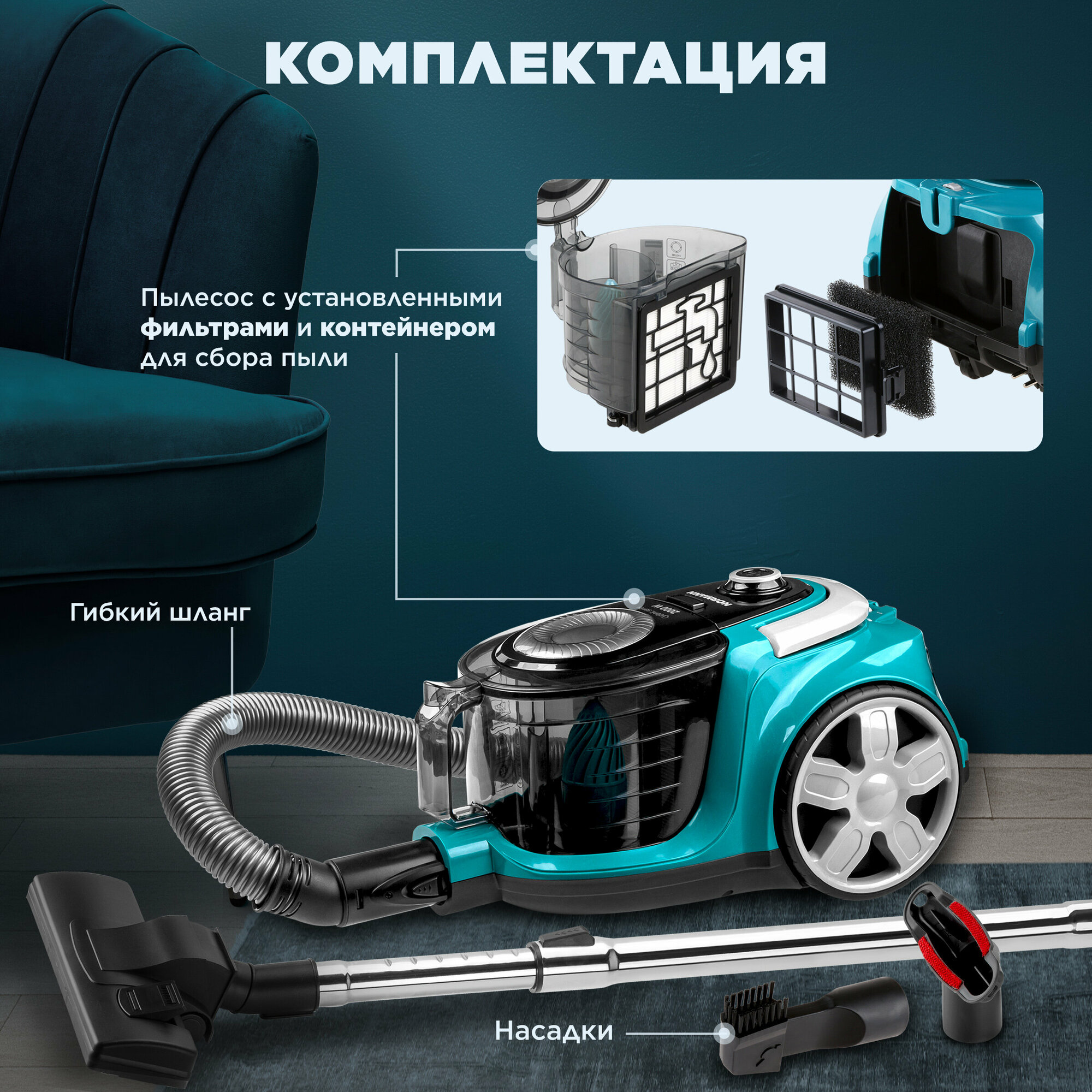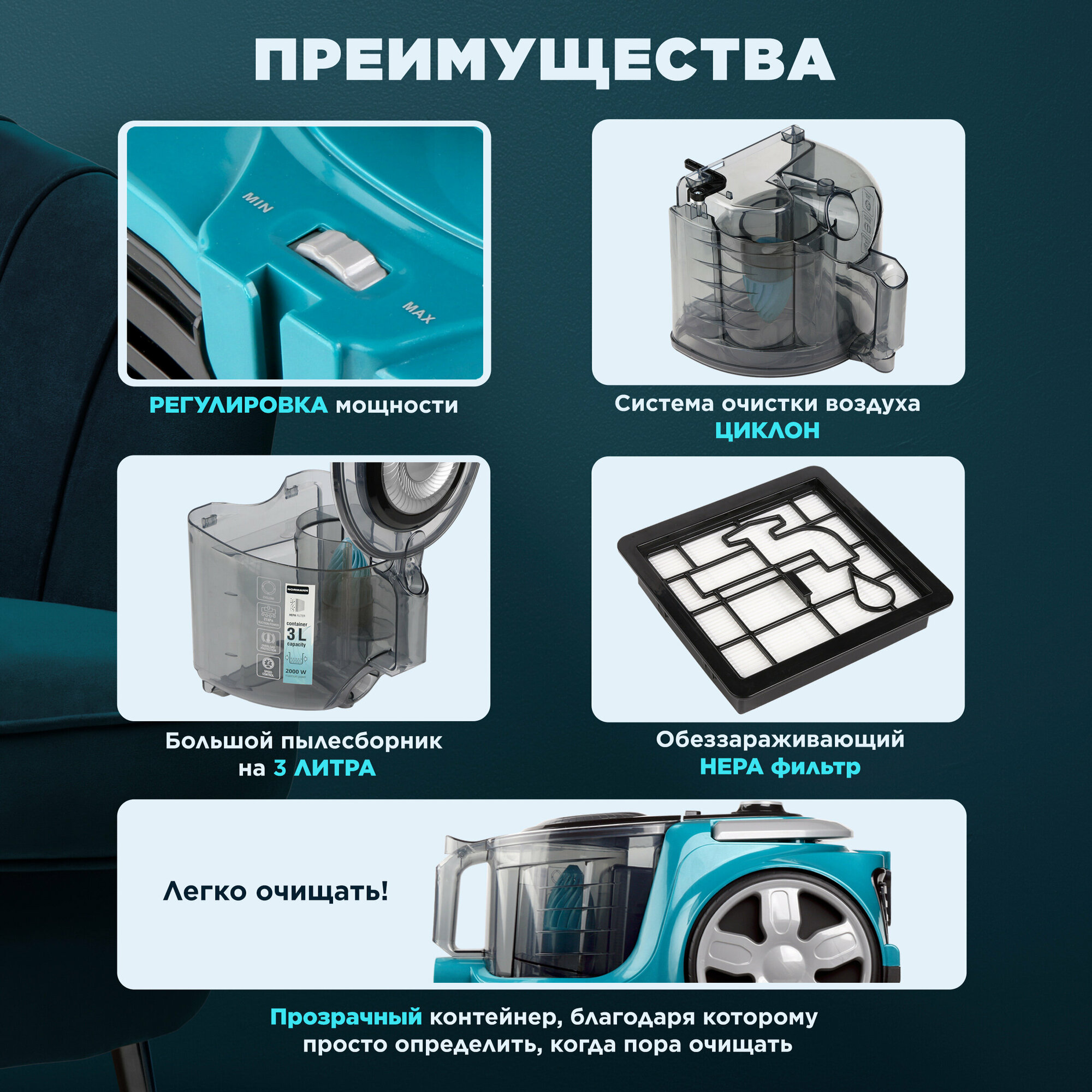 Пылесос для дома с контейнером Galaxy NORMANN AVC-213 2000 Вт мощный бытовой без мешка для сбора пыли, пылесборник 3 л, для сухой уборки и мультициклон, мощность всасывания 21 кПа, микроволокно фильтр
