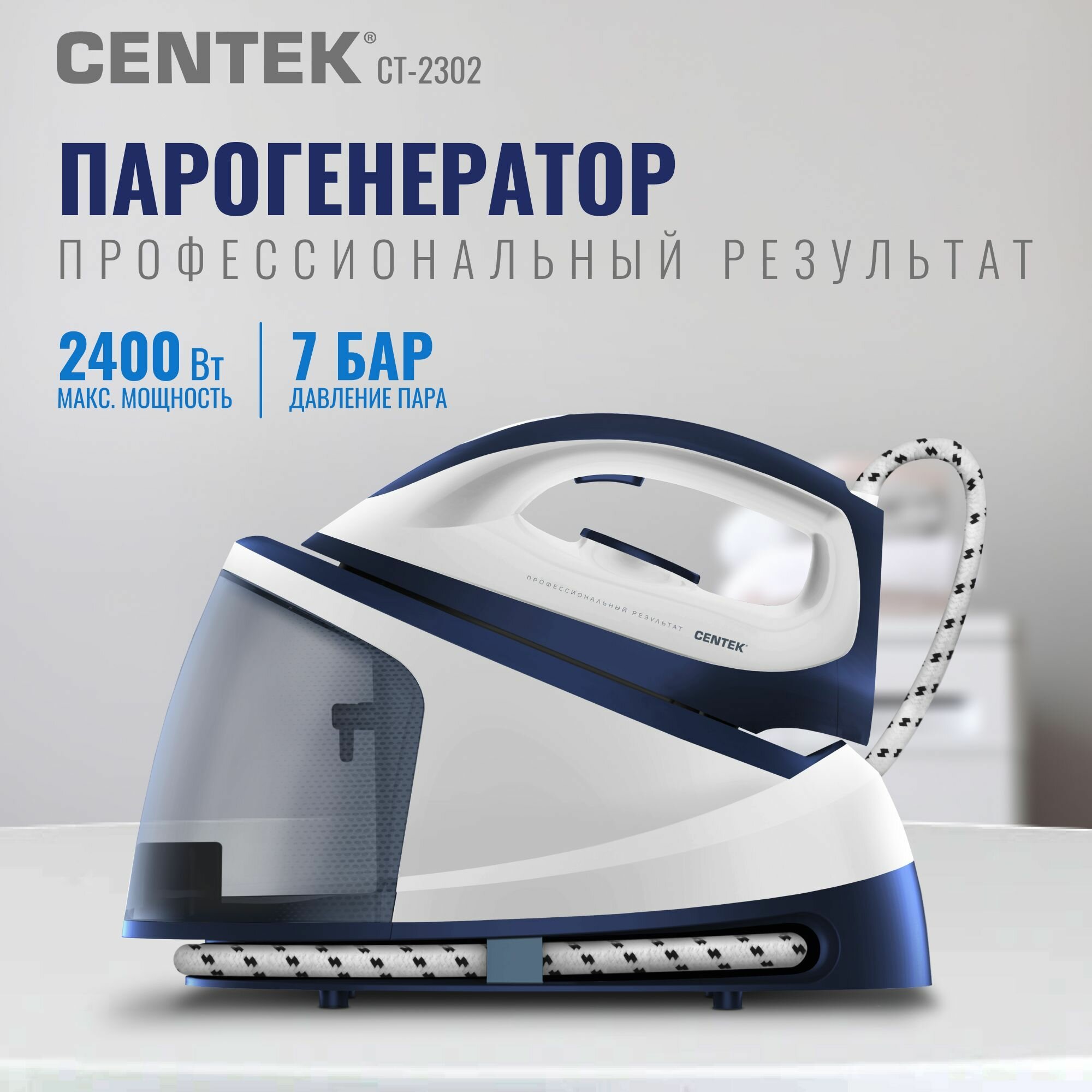 Утюг парогенератор Centek CT-2302: 2400Вт, 7Бар, 120г/мин, 1.2л, керамическая подошва, помпа интересное: