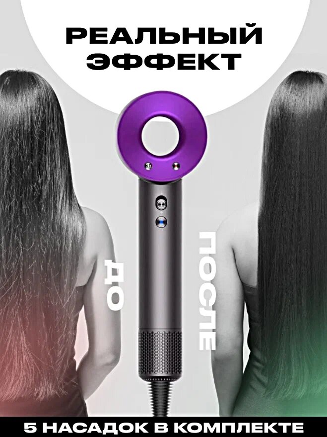 Акция !!Фен для волос Фен с ионизацией Профессиональный фен Стайлер для укладки и выпрямления волос 5 в 1 фиолетовый интересное: