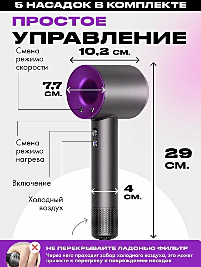 | Подробная комплектация | фен Super hair drayer, 5 магнитных насадок, инструкция |