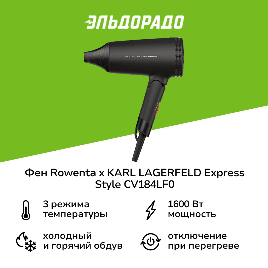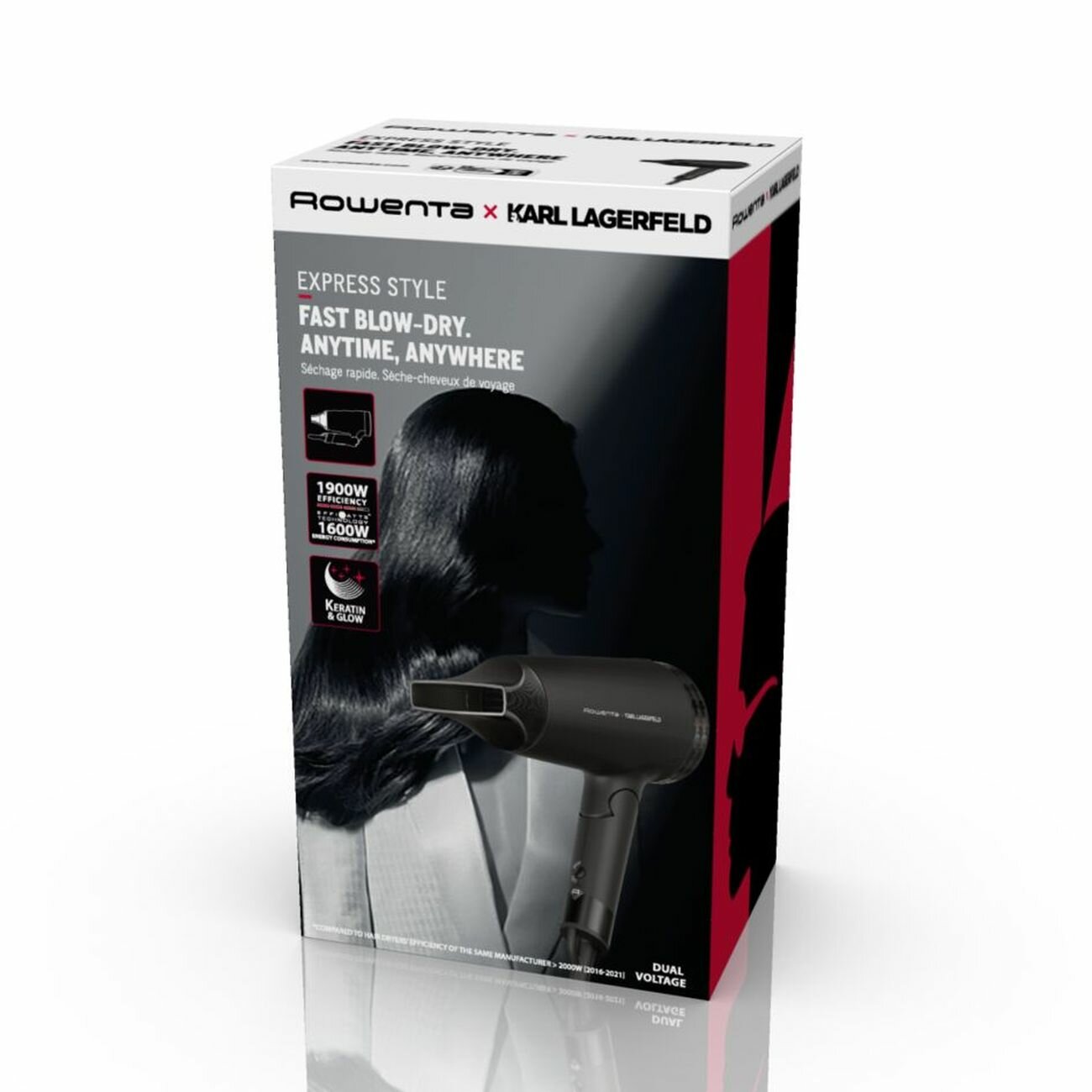 Фен для волос Rowenta x Karl Lagerfeld Express Style CV184LF0 с концентратором, 4 режима работы, 1600 Вт, черный