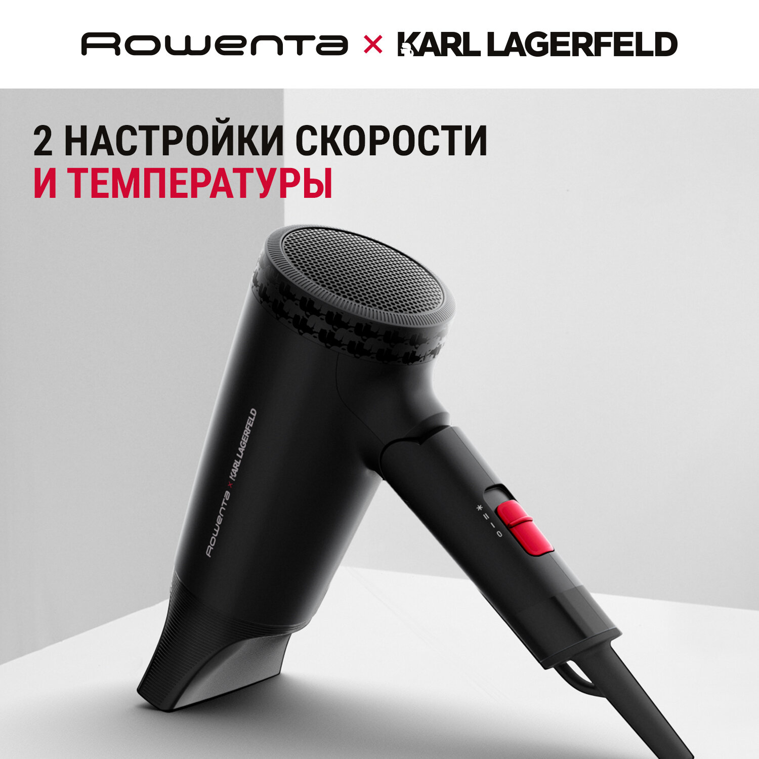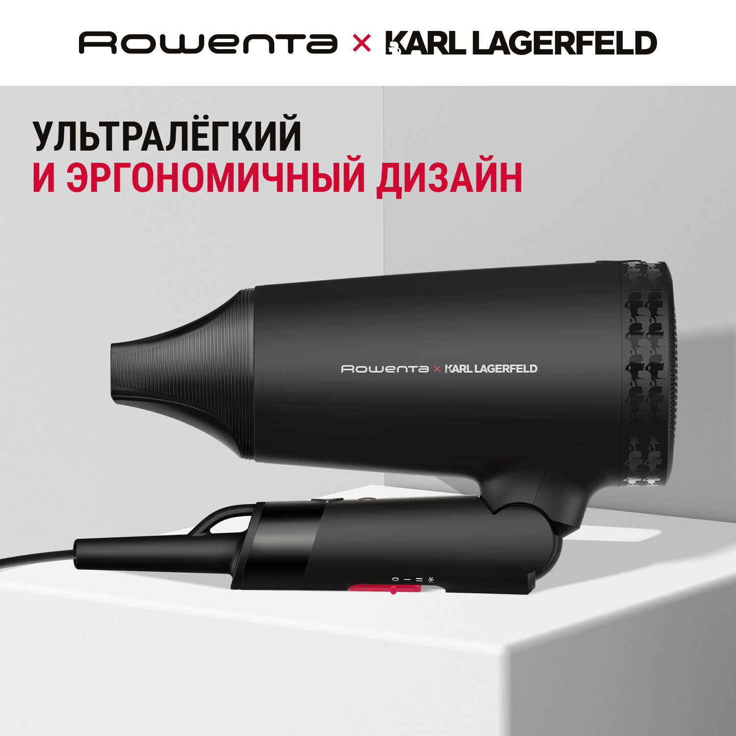 Фен для волос складной Rowenta Karl Lagеrfeld Express Style CV184LF0, мощность 1600 Вт, петля для подвешивания, ультра-холодный воздух
