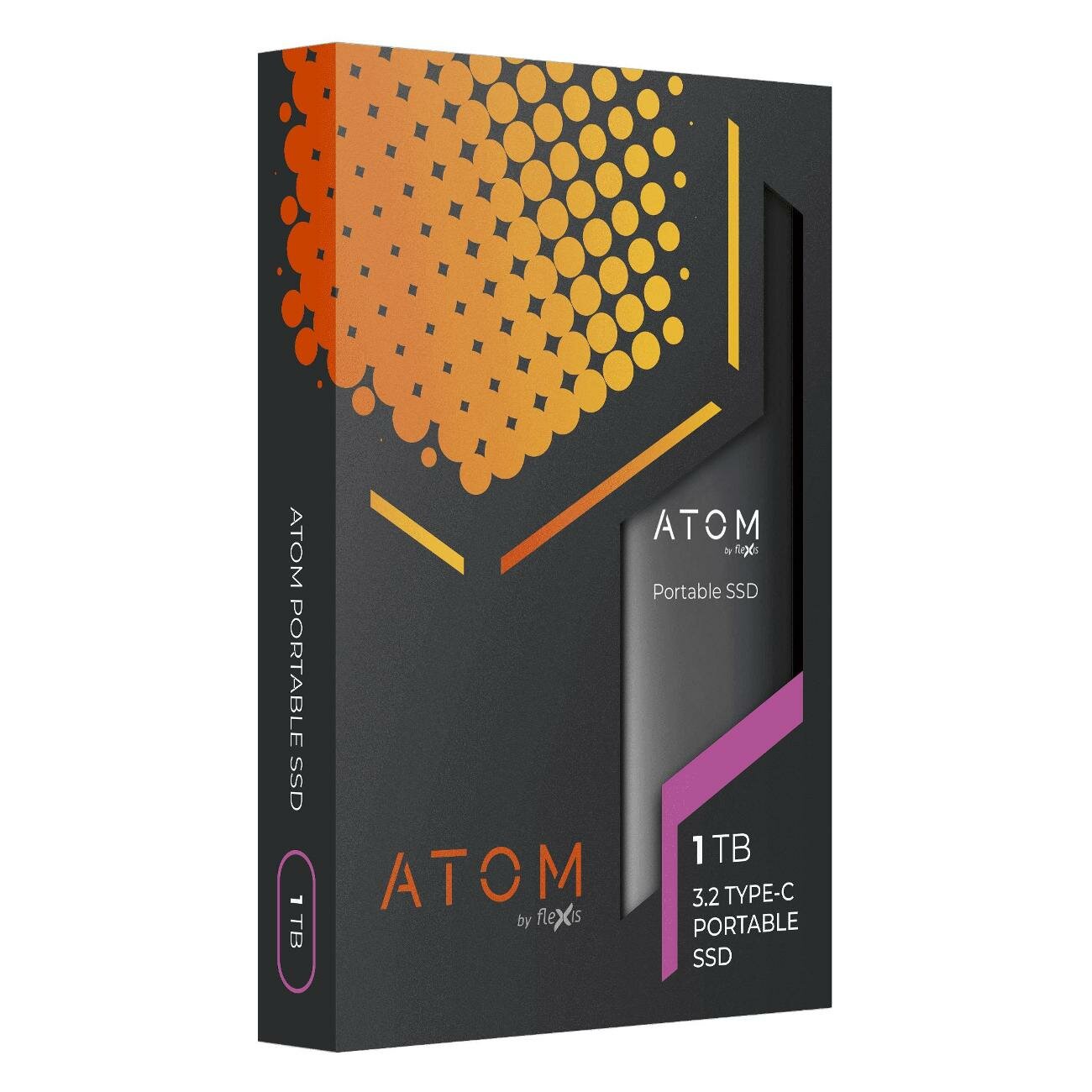 Внешний твердотельный накопитель Atom Portable SSD 1tb , 500/400mbs , USB 3.2 Type-C , AEXSSD1TSG