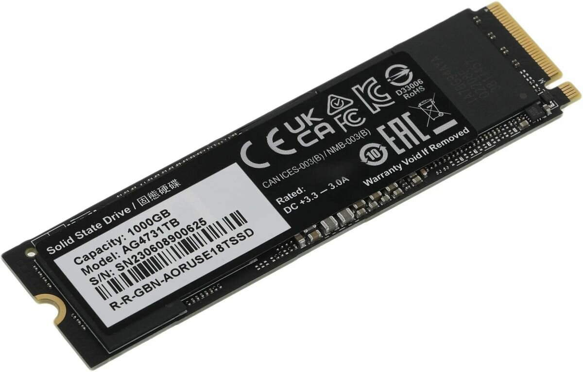 SSD накопитель GIGABYTE Aorus Gen4 7300 AG4731TB 1ТБ, M.2 2280, PCIe 4.0 x4, NVMe, M.2