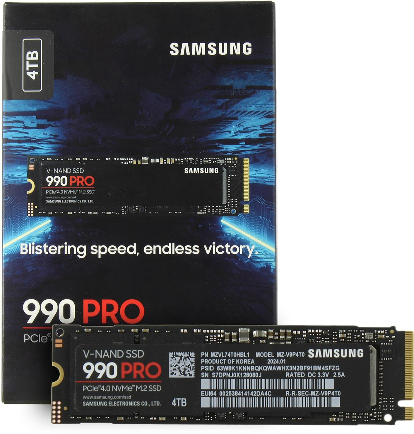 Твердотельный накопитель SSD Samsung 990 PRO 4Tb M.2 2280 NVMe PCIe Gen 4.0x4 [P/N: MZ-V9P4T0BW]