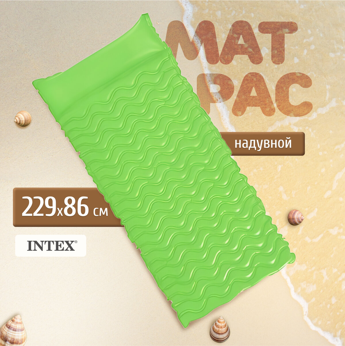 Матрас надувной пляжный 188х71см с подстаканниками, Intex, 59895 зеленый