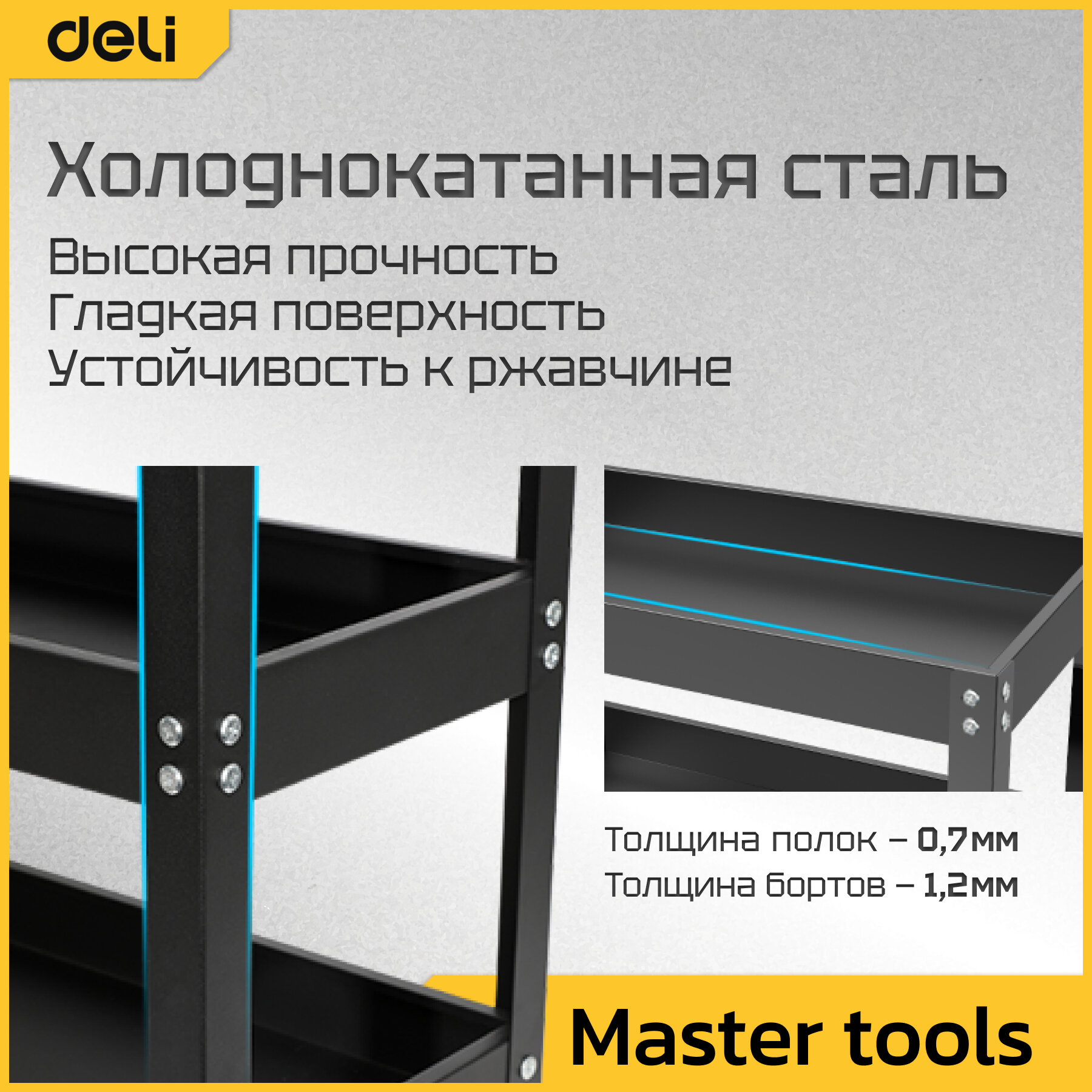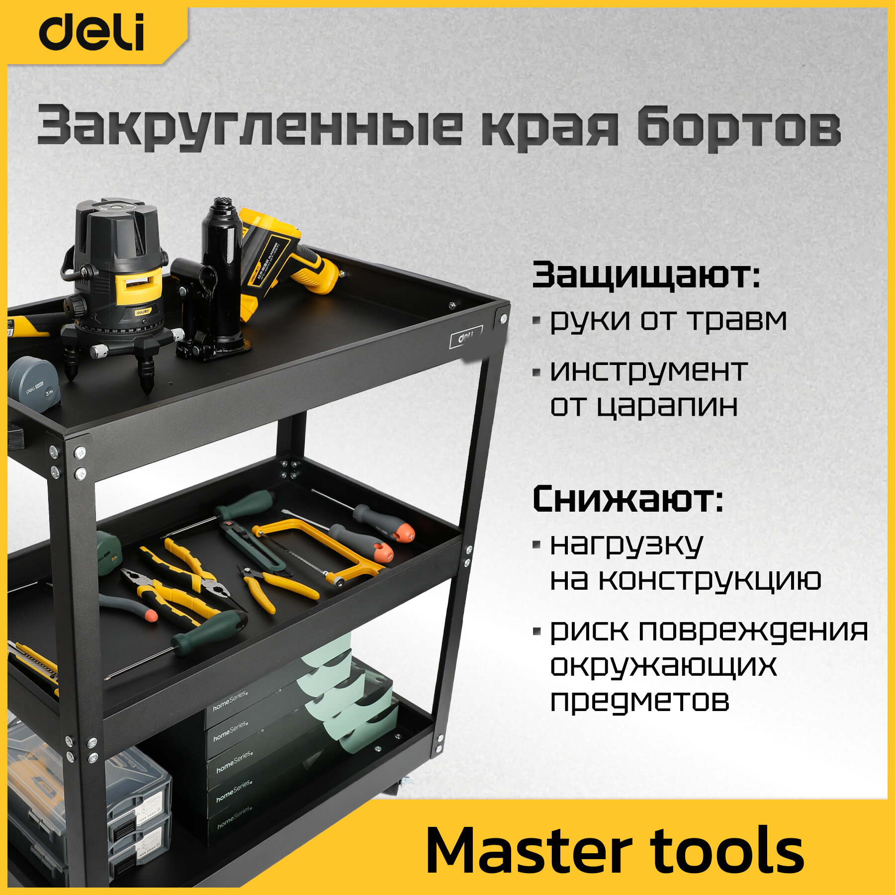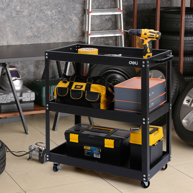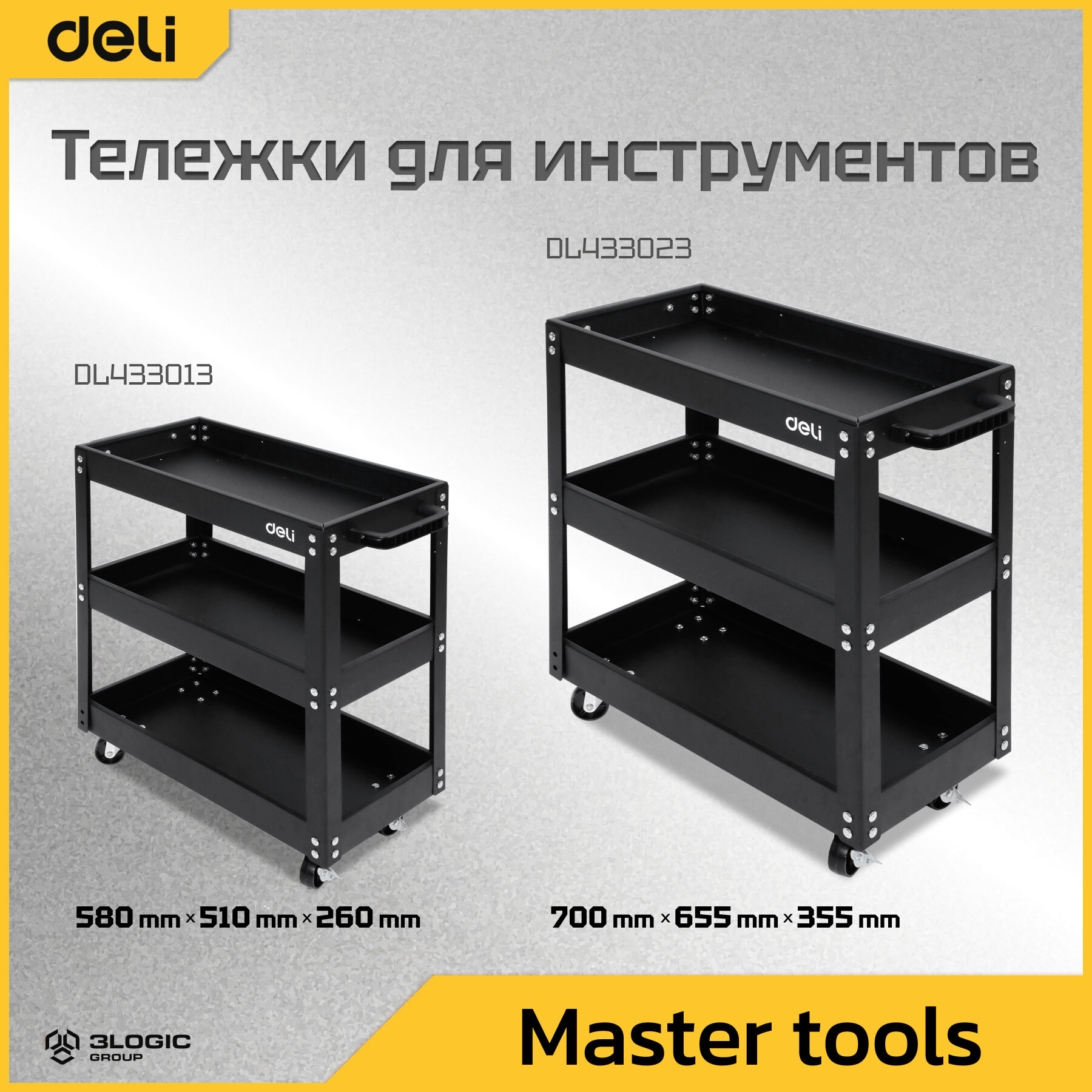 Deli Тележка инструментальная Deli DL433023, трехсекционная на колесах, до 210 кг, черный (700мм, 350мм, 760мм)