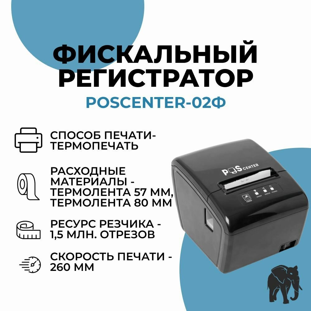 Фискальный регистратор ККТ "Poscenter-02Ф" (USB, Serial, Ethernet) черный без фн