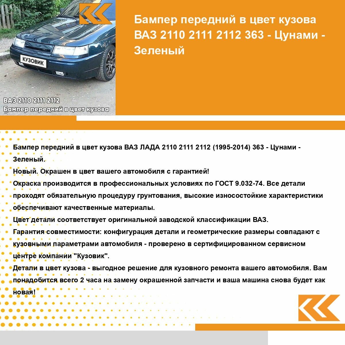 СохранитьБампер передний в цвет кузова для ВАЗ 2110 2111 2112 363 - Цунами - Зеленый интересное: