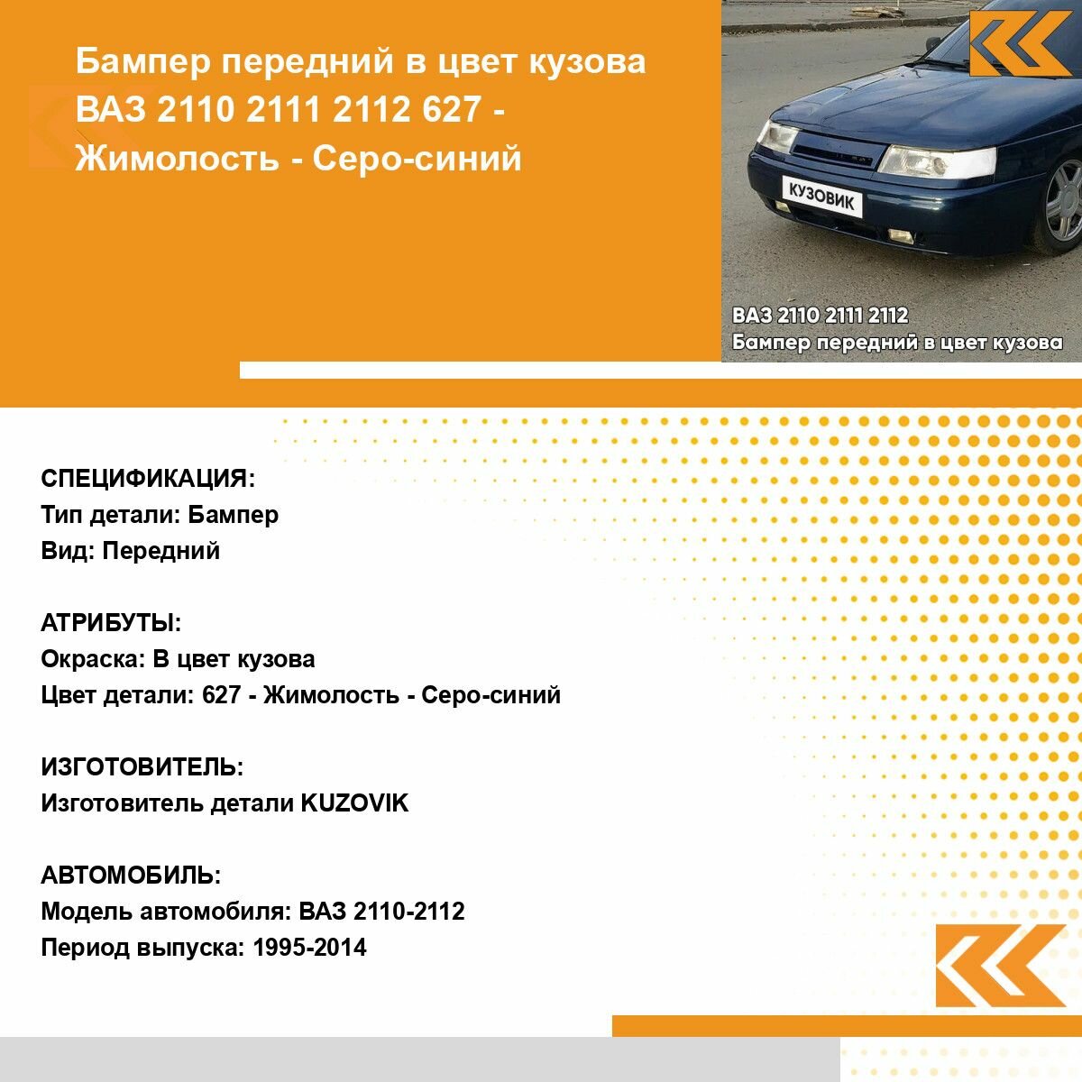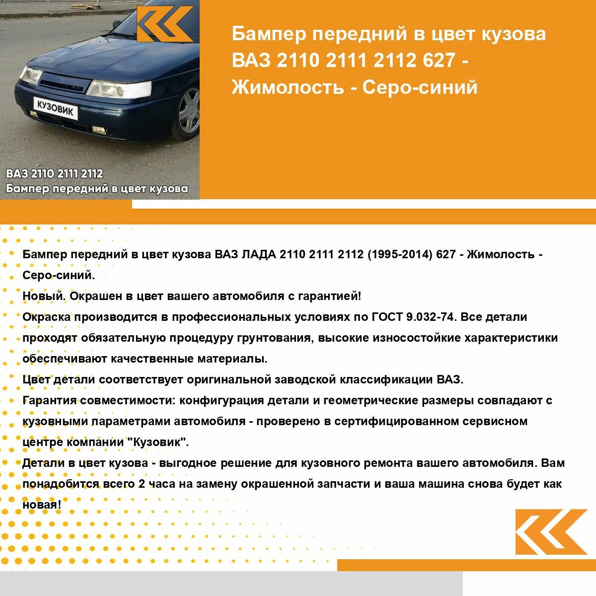 СохранитьБампер передний в цвет кузова для ВАЗ 2110 2111 2112 627 - Жимолость - Серо-синий интересное: