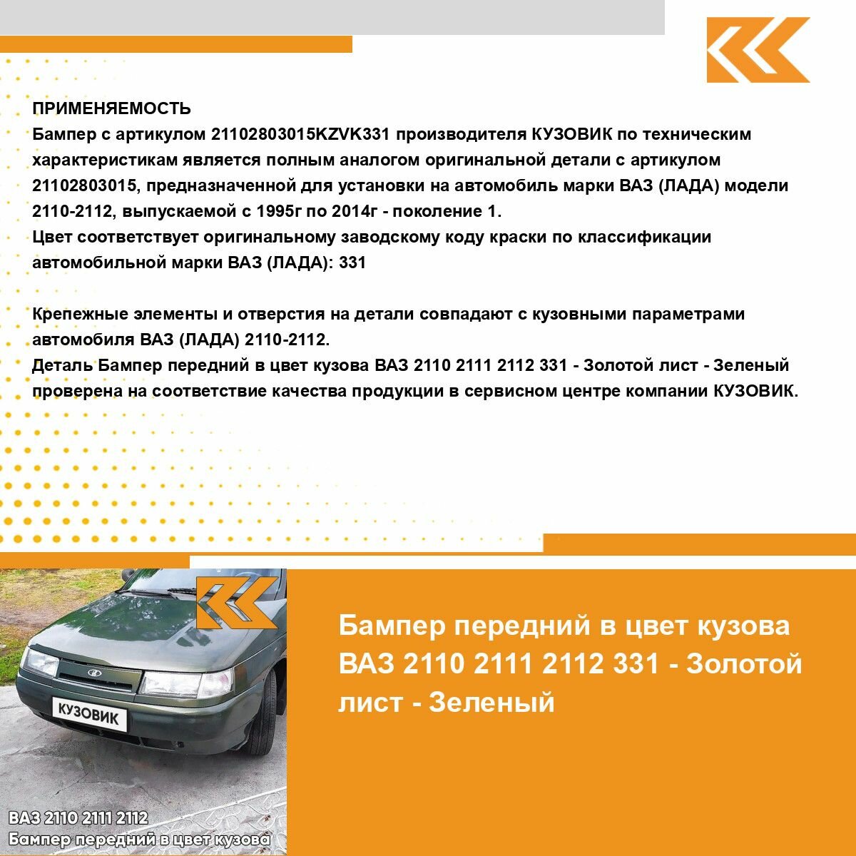 СохранитьБампер передний в цвет кузова для ВАЗ 2110 2111 2112 331 - Золотой лист - Зеленый интересное: