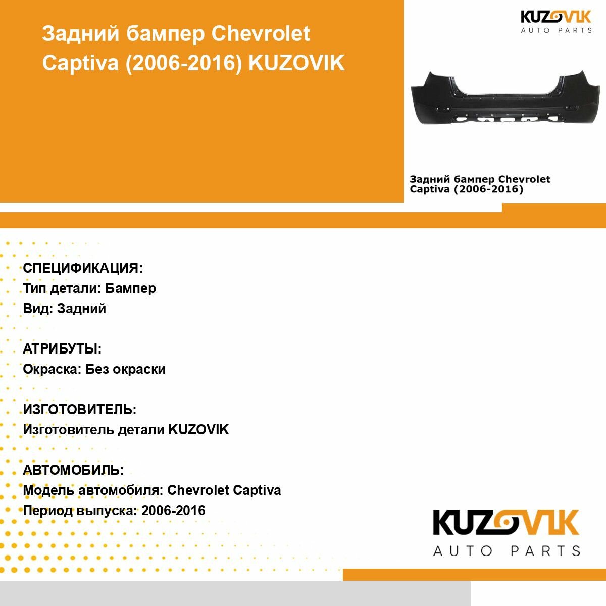 Ниже Вы можете прочитать отзывы на Бампер задний для Шевроле Каптива Chevrolet Captiva (2006-2012) с отверстиями под парктроники, ознакомится с подробными характеристиками, посмотреть интересные обзоры и фотографии на Бампер задний для Шевроле Каптива Chevrolet Captiva (2006-2012) с отверстиями под парктроники.
