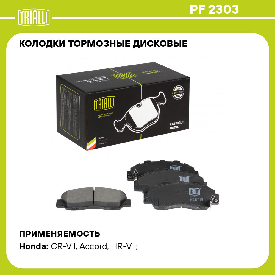 Колодки тормозные дисковые для автомобилей Honda CR-V (95-) передние PF 2303 TRIALLI интересное: