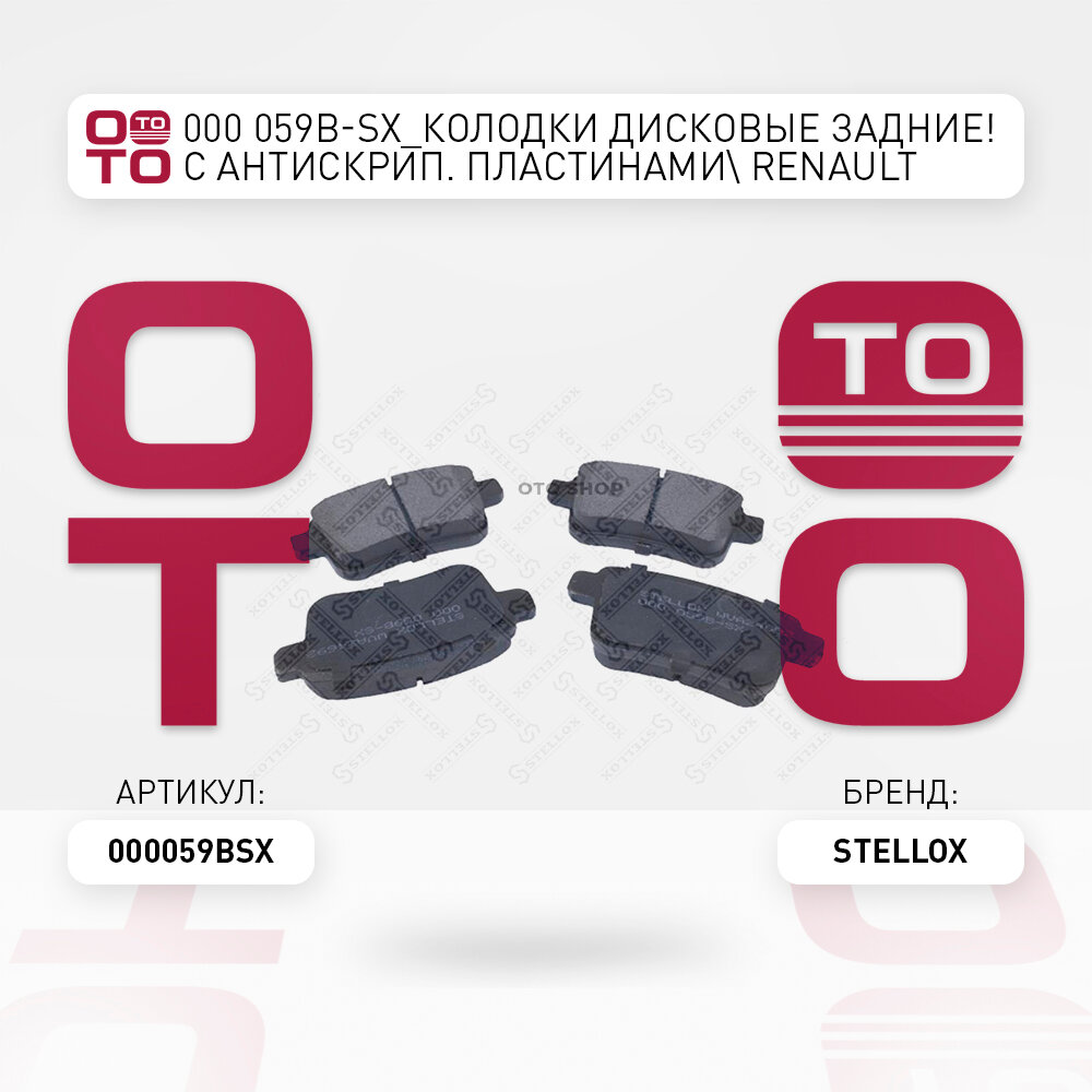 Купить 000 059B-Sx_колодки Дисковые Задние! С Антискрип. Пластинами Renault Kangoo 1.6/1.5Dci 08> Stellox арт. 000 059B-SX