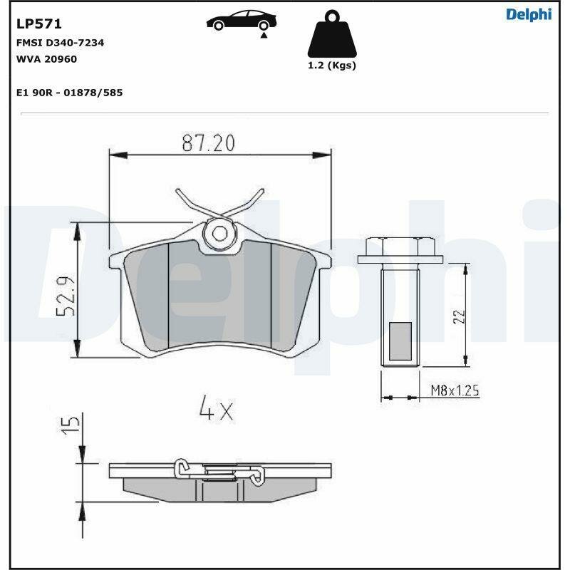 DELPHI LP571 (161698451D / 191615415A / 191615415D) колодки зад. Audi (Ауди) a4, a6 / VW golf, passat, vento 92-2001 wva20961