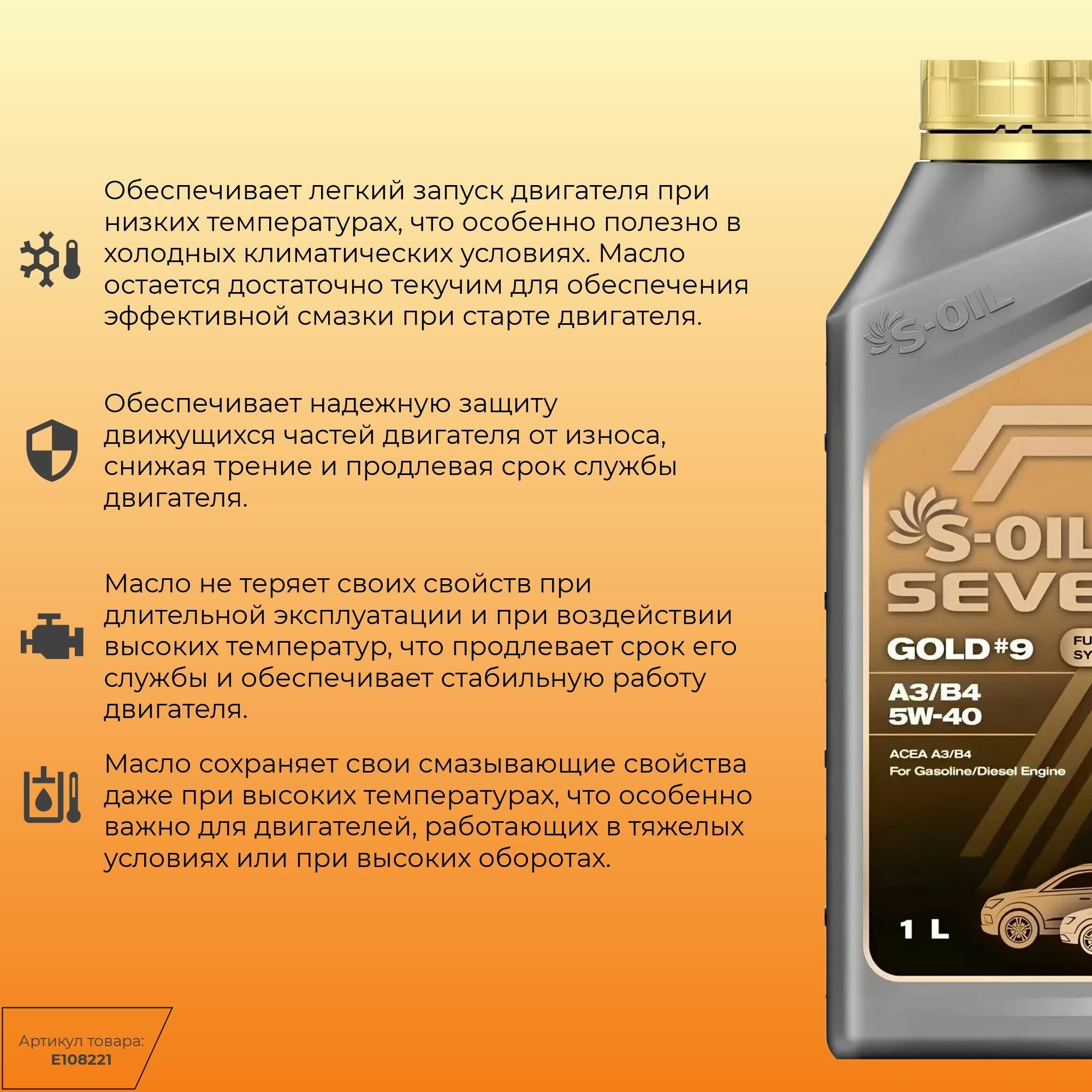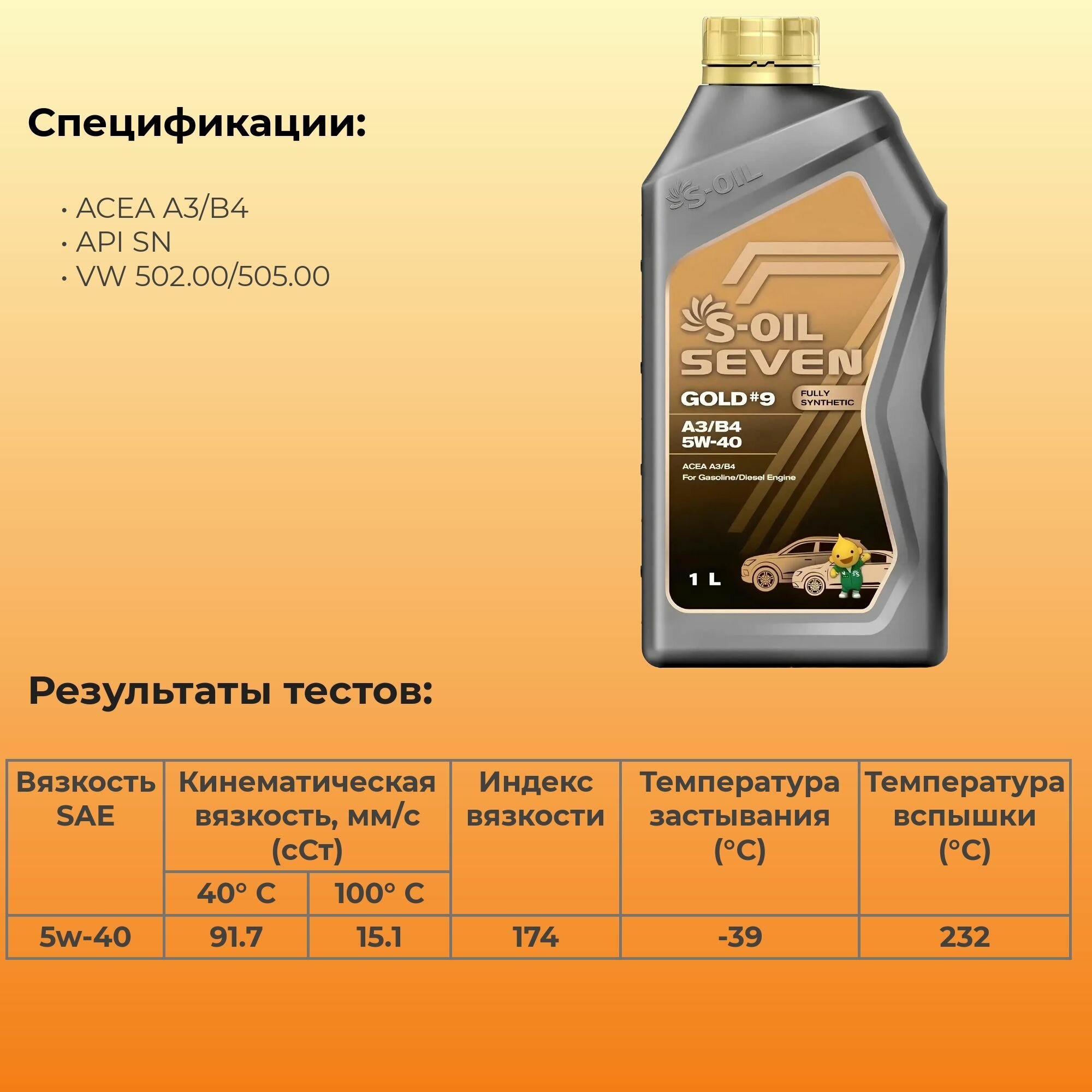 СохранитьСинтетическое моторное масло S-OIL SEVEN GOLD#9 A3/B4 5W-40, 1 литр. интересное: