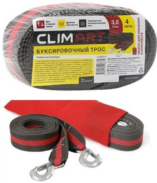 Трос Буксировочный Трос Буксировочный 3,5 Тонн Х 4 М (2Крюка, Мешок Для Хранения) CLIM ART арт. CLA00771