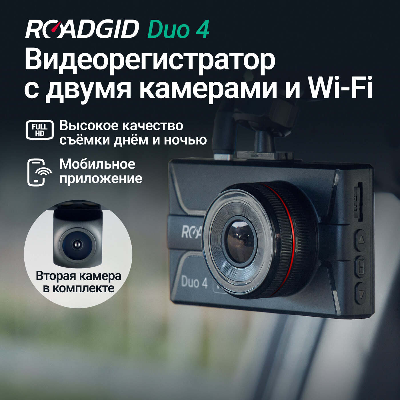 Купить Видеорегистратор для автомобиля с двумя камерами Full HD Roadgid Duo 4 Wi-Fi