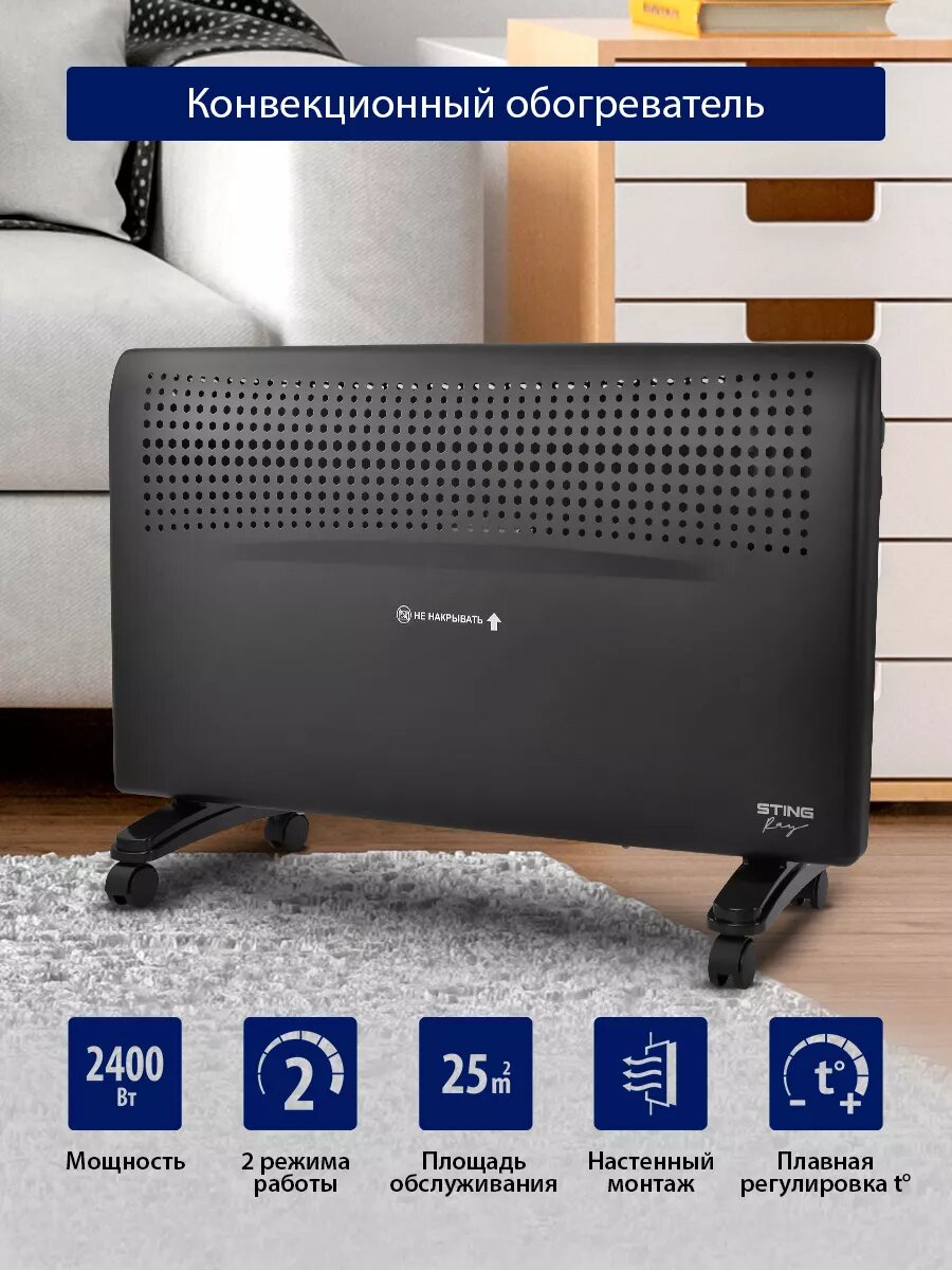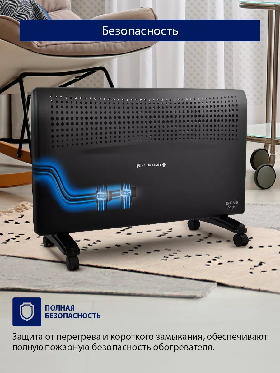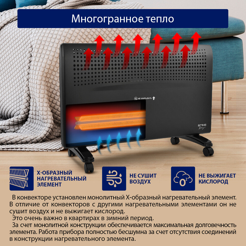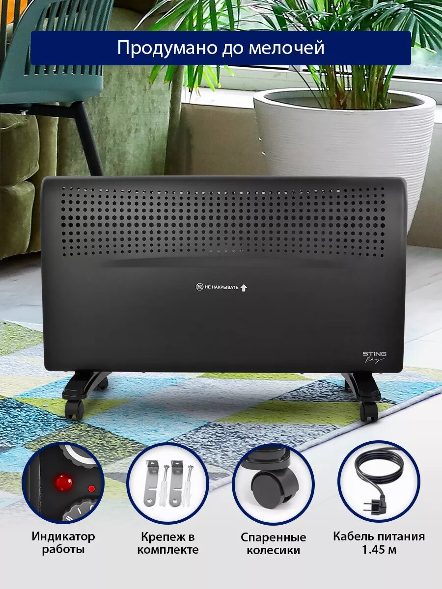 Обогреватель конвектор электрический STINGRAY ST-CH1020B черный жемчуг