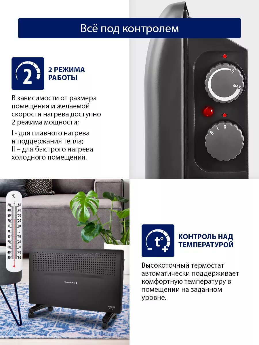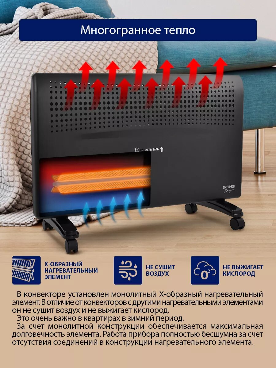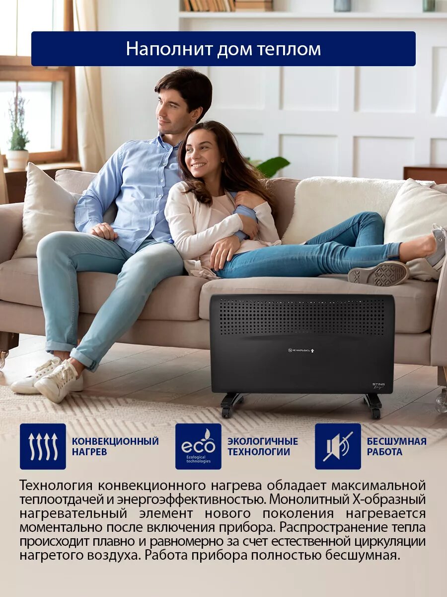 Обогреватель конвектор электрический STINGRAY ST-CH1020B черный жемчуг