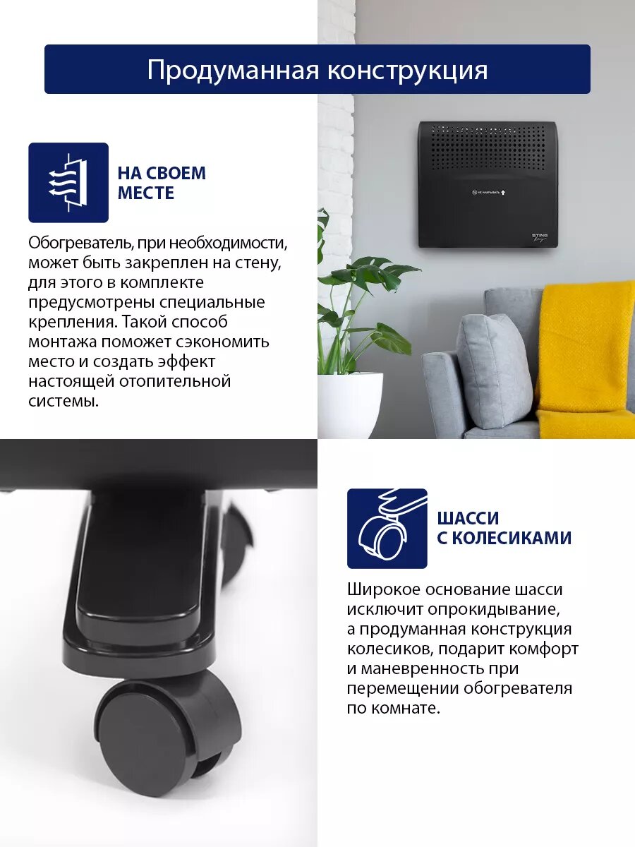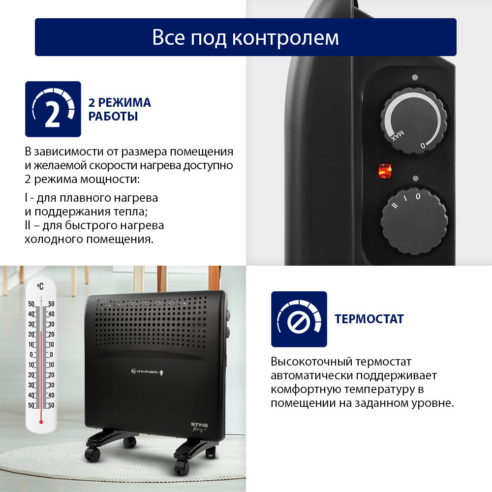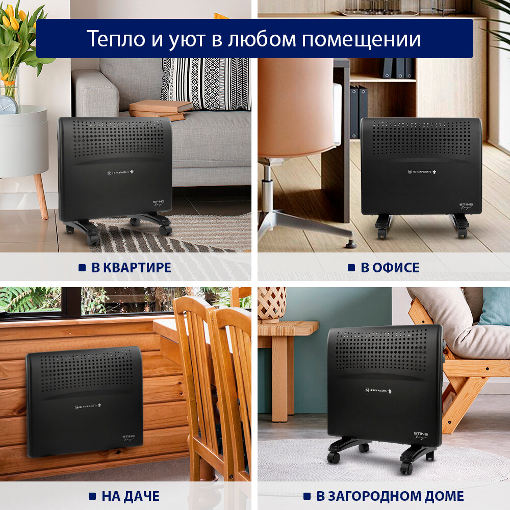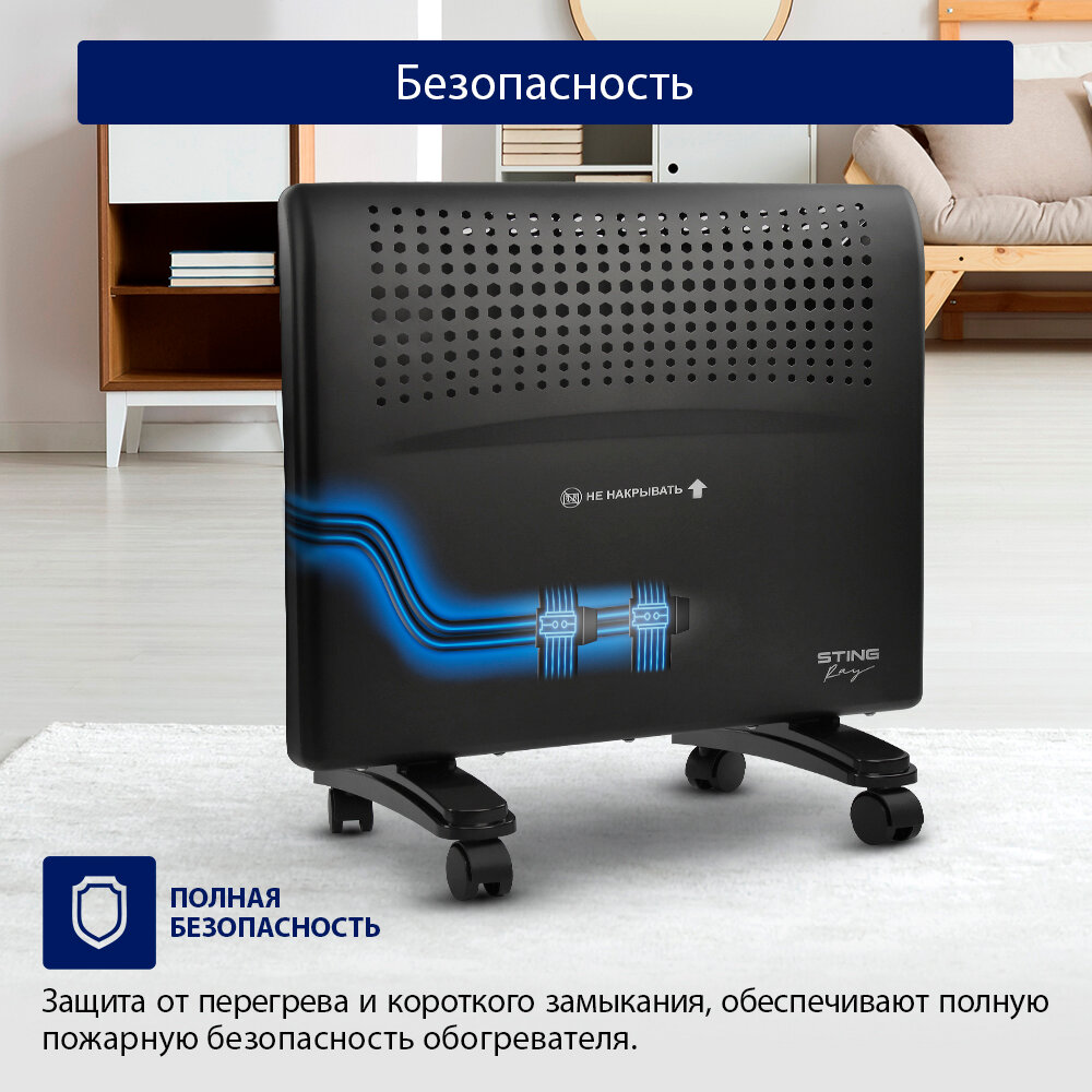 Обогреватель конвектор электрический STINGRAY ST-CH1020B черный жемчуг