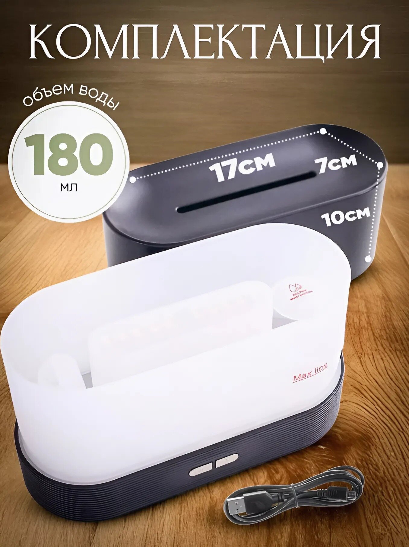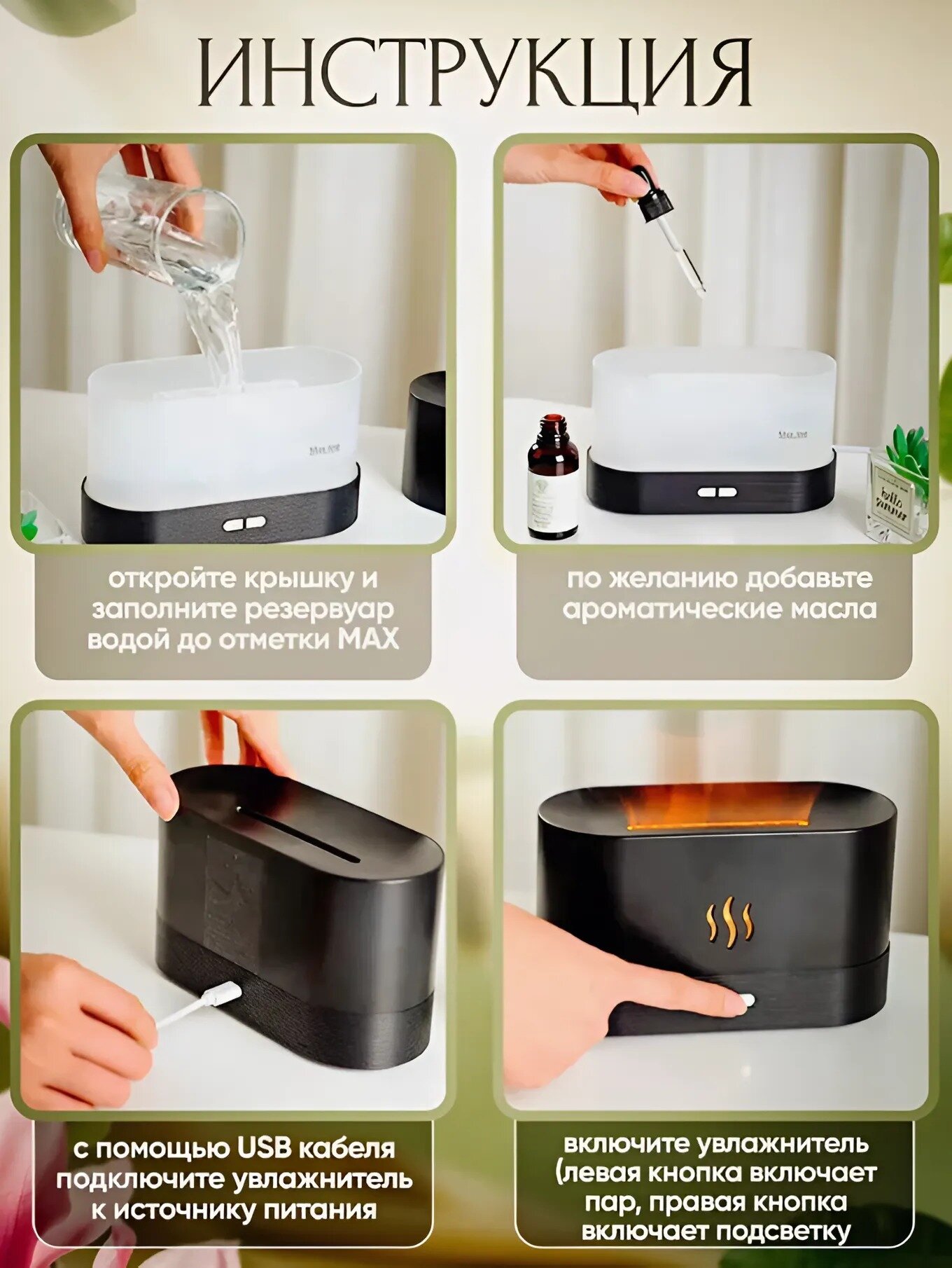 Увлажнитель воздуха, аромадиффузер с эффектом пламени, черный