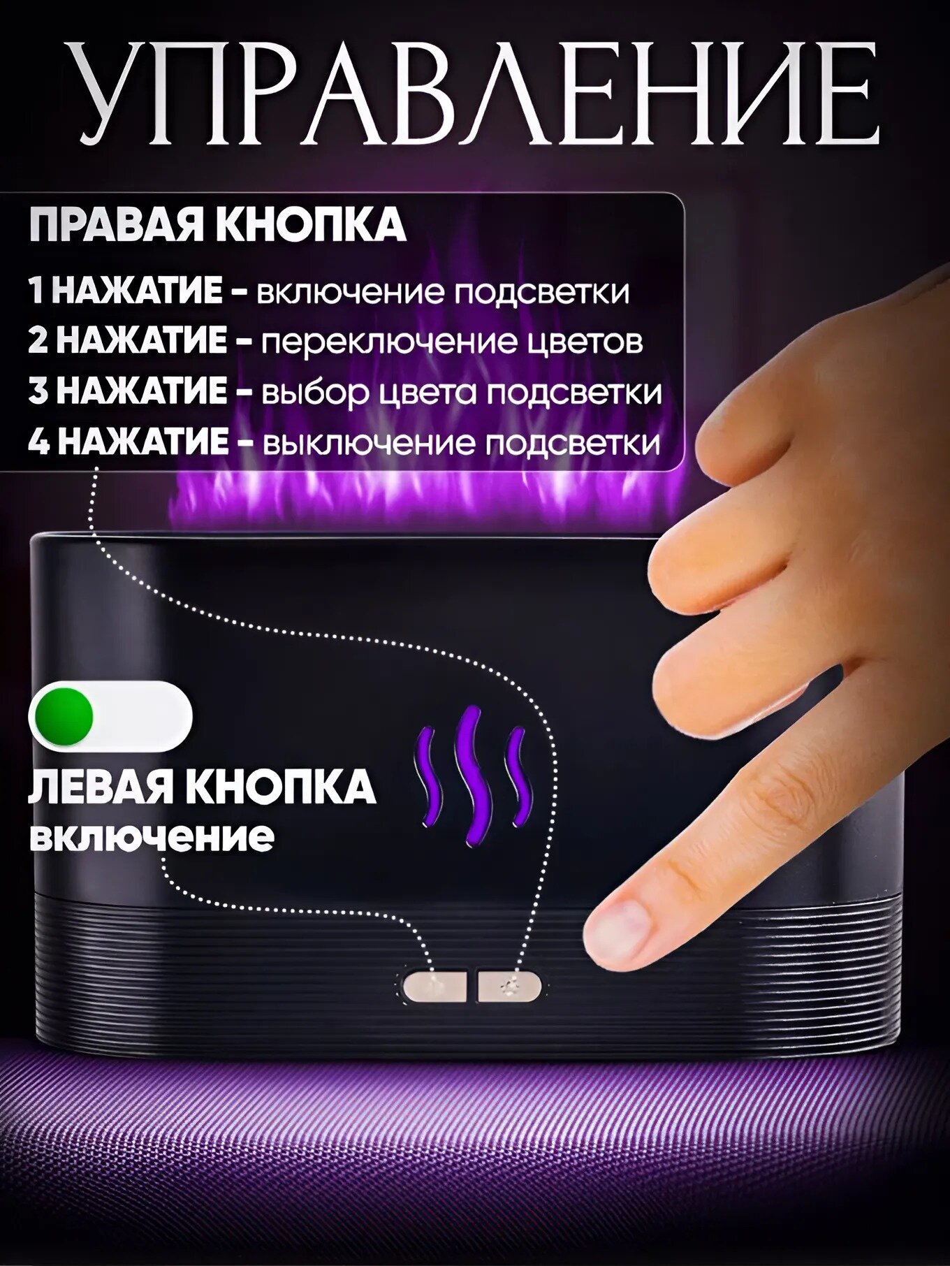 Увлажнитель воздуха с эффектом пламени/аромадиффузор, 7 цветов подсветки,чёрный
