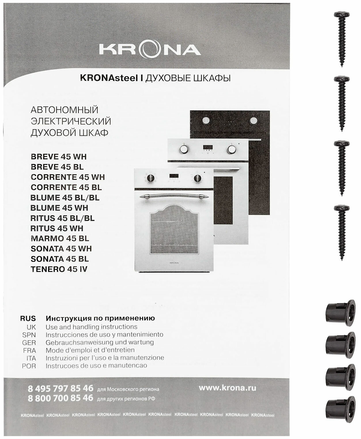 Духовой шкаф электрический встраиваемый 45 см KRONA BLUME 45 WH