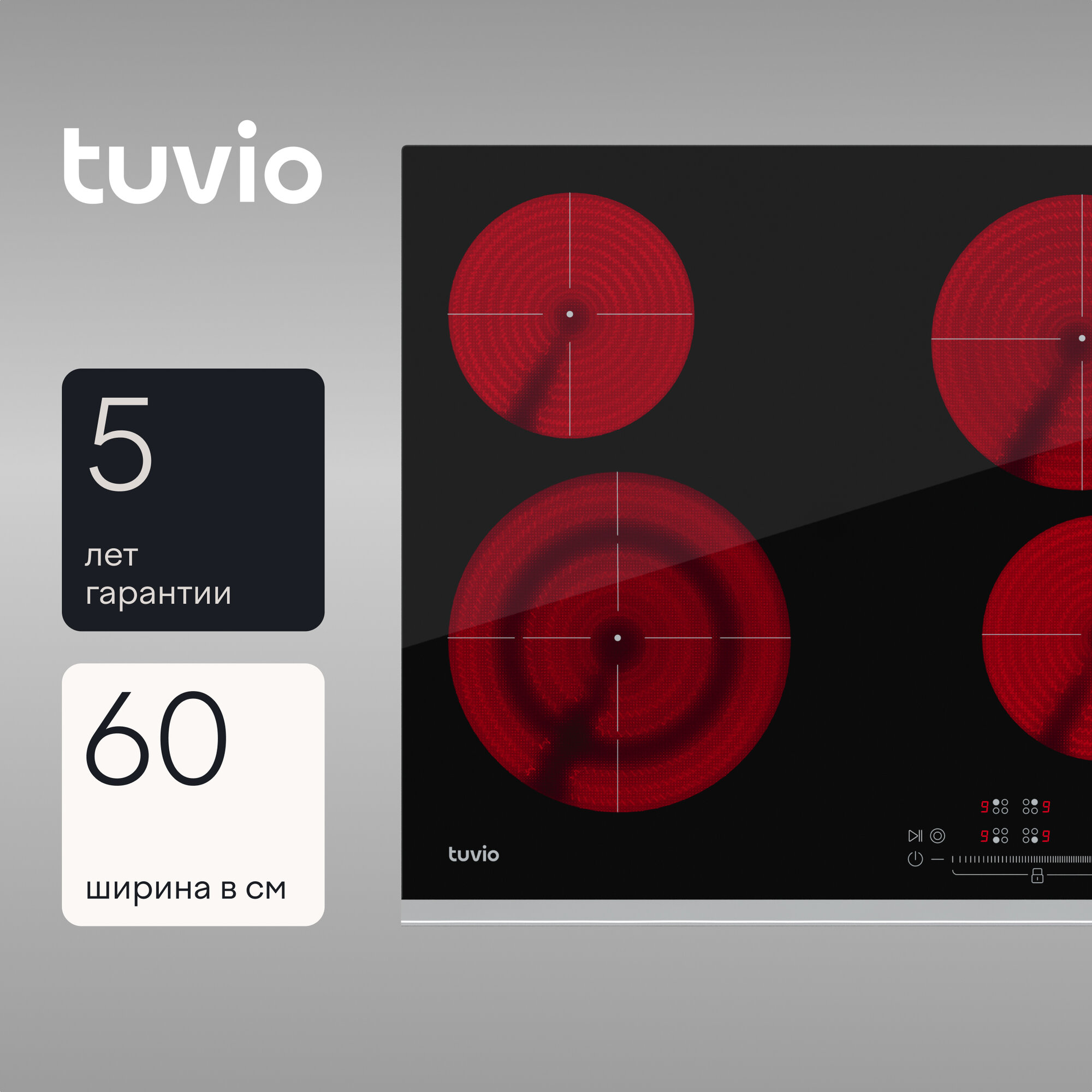 Электрическая варочная панель Tuvio HRS82LBB1, с рамкой, цвет панели черное стекло/металл, цвет рамки серебристый интересное: