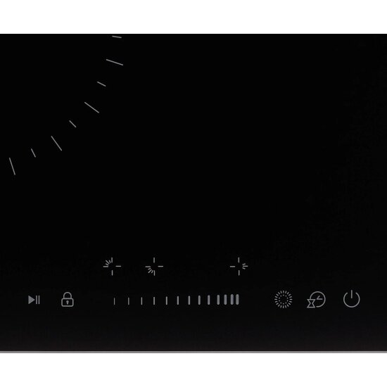 | Размеры конфорок | Диаметр и мощность конфорок, мм/кВт: Дальняя левая: 165 мм * 1,2 кВт; Ближняя левая: 200 мм * 1,8 кВт; Центральная правая: 120/200 мм * 1/2 кВт |