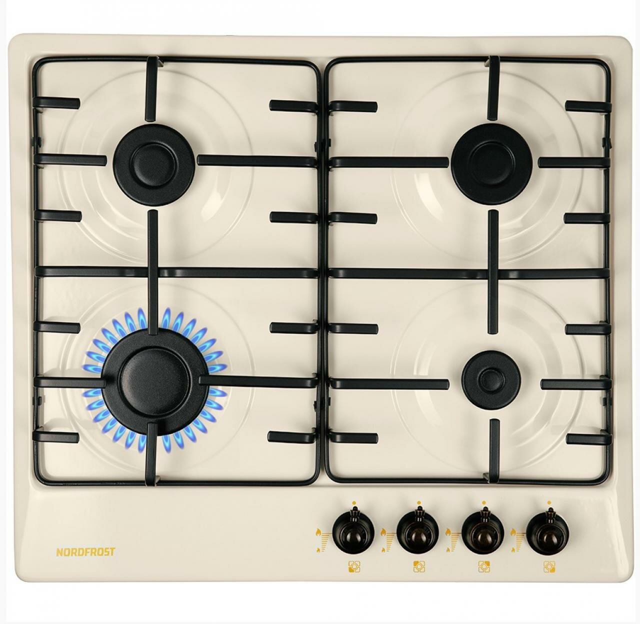 Газовая варочная поверхность NORDFROST HS 6040 YR, бежевая эмаль ретро