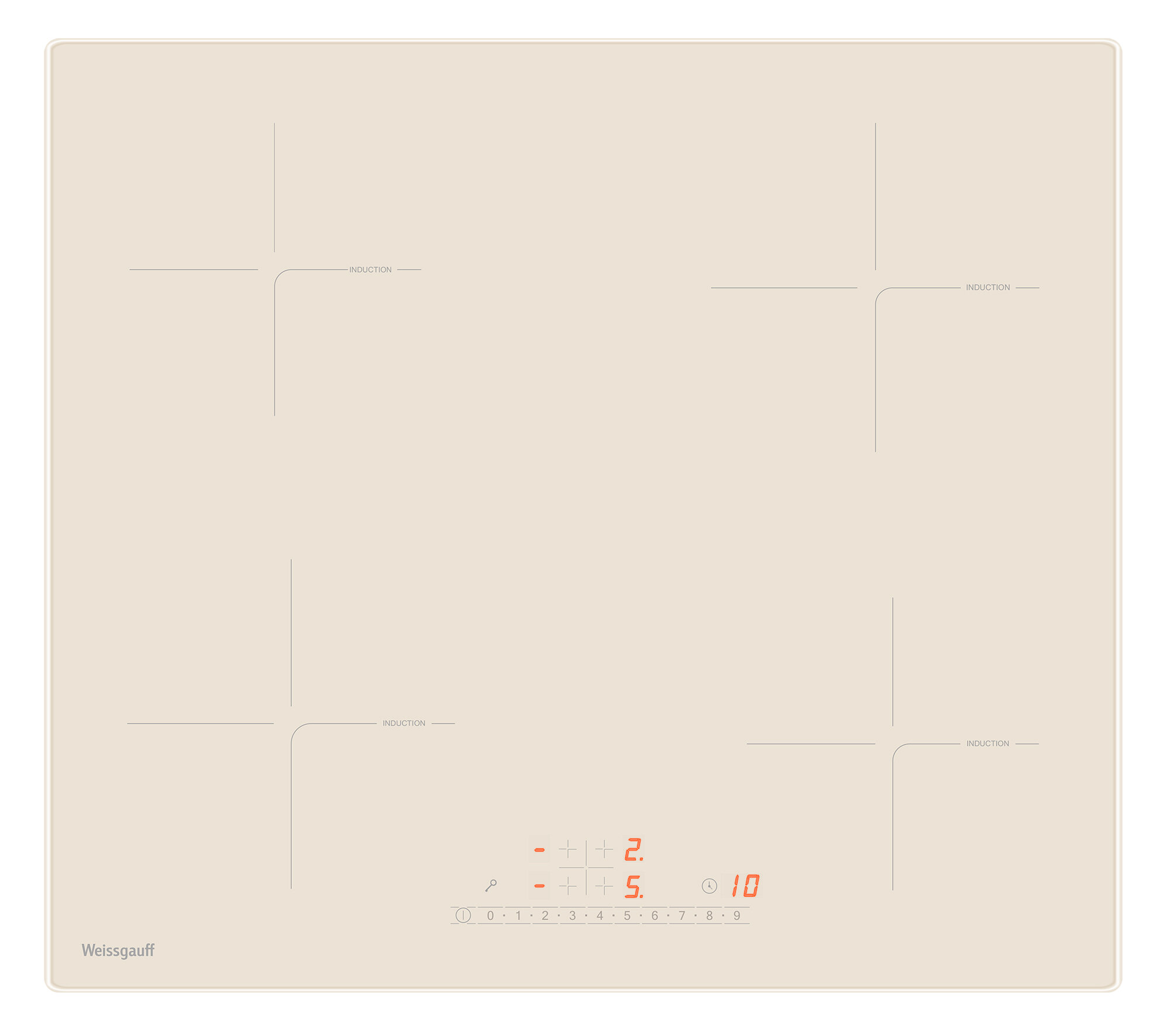 Купить Индукционная панель Weissgauff HI 632 GSA, Сенсорное управление слайдер, Мощность 7200 Вт, Бежевый цвет, Таймер