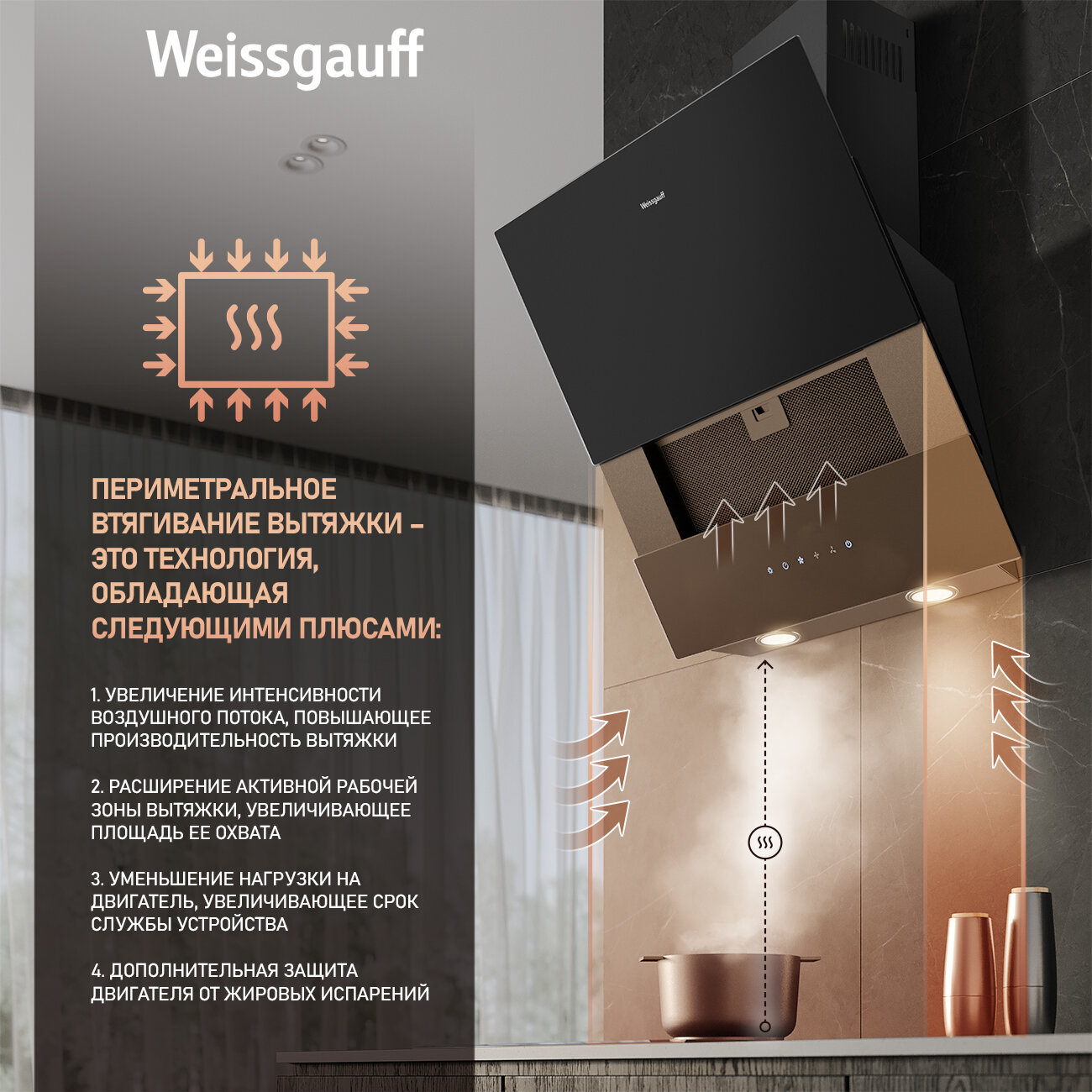 Купольная вытяжка Weissgauff Yota 606 Touch Black Glass, Производительность 900 м3/ч интересное: