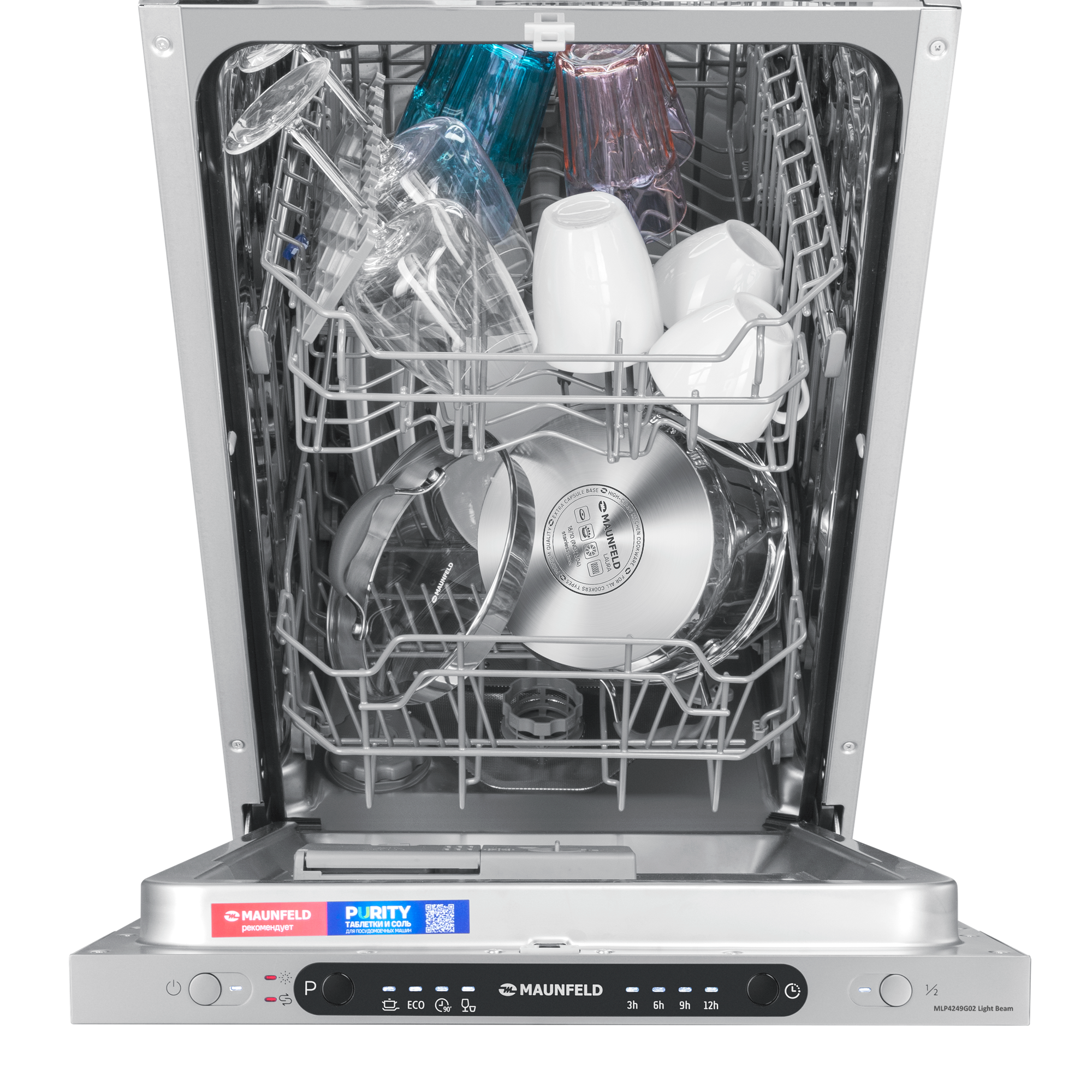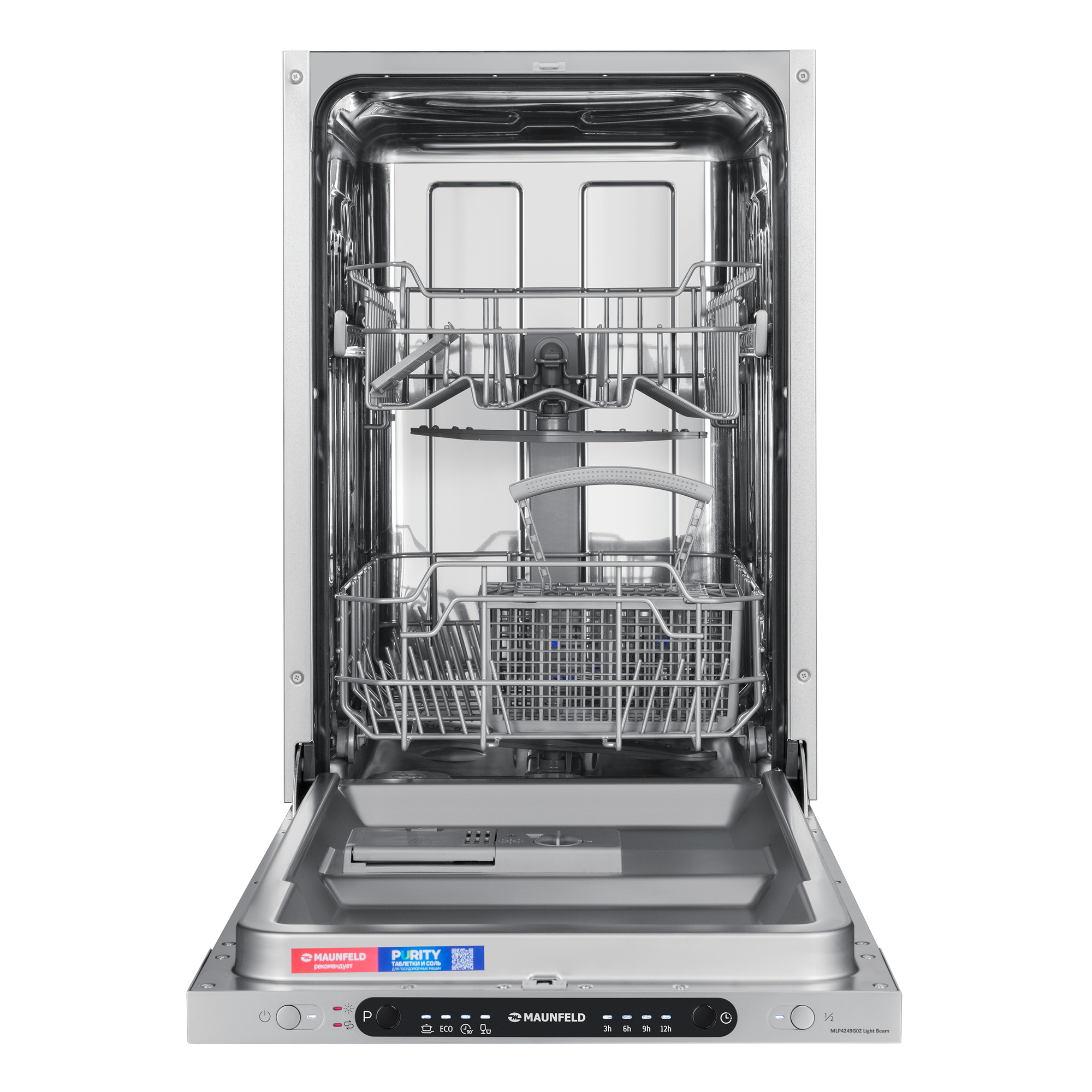 Купить Посудомоечная машина MAUNFELD MLP4249G02 Light Beam встраиваемая узкая 45 см, 9 комплектов посуды, 4 программы, луч на полу, быстрая мойка, защита от протечек, луч на полу, гарантия 3 года