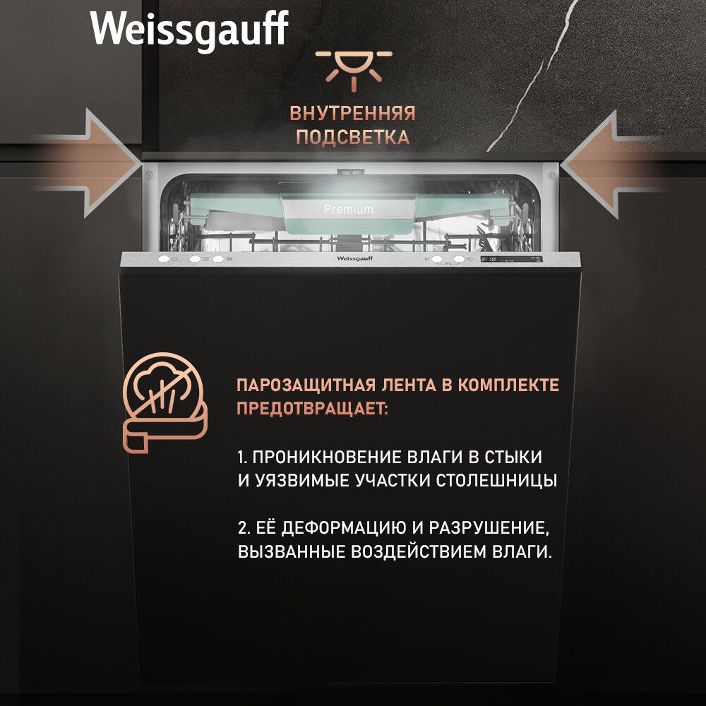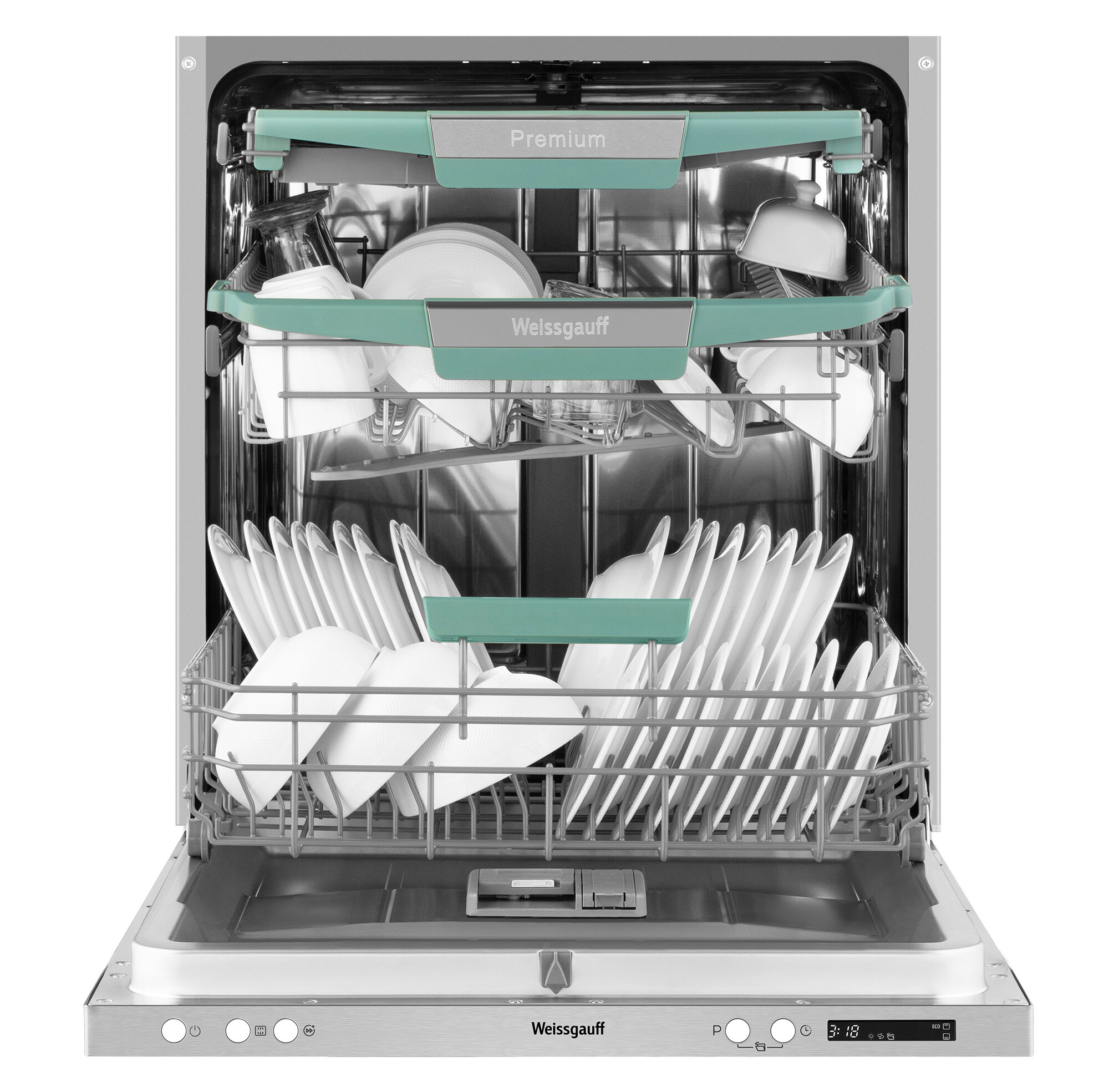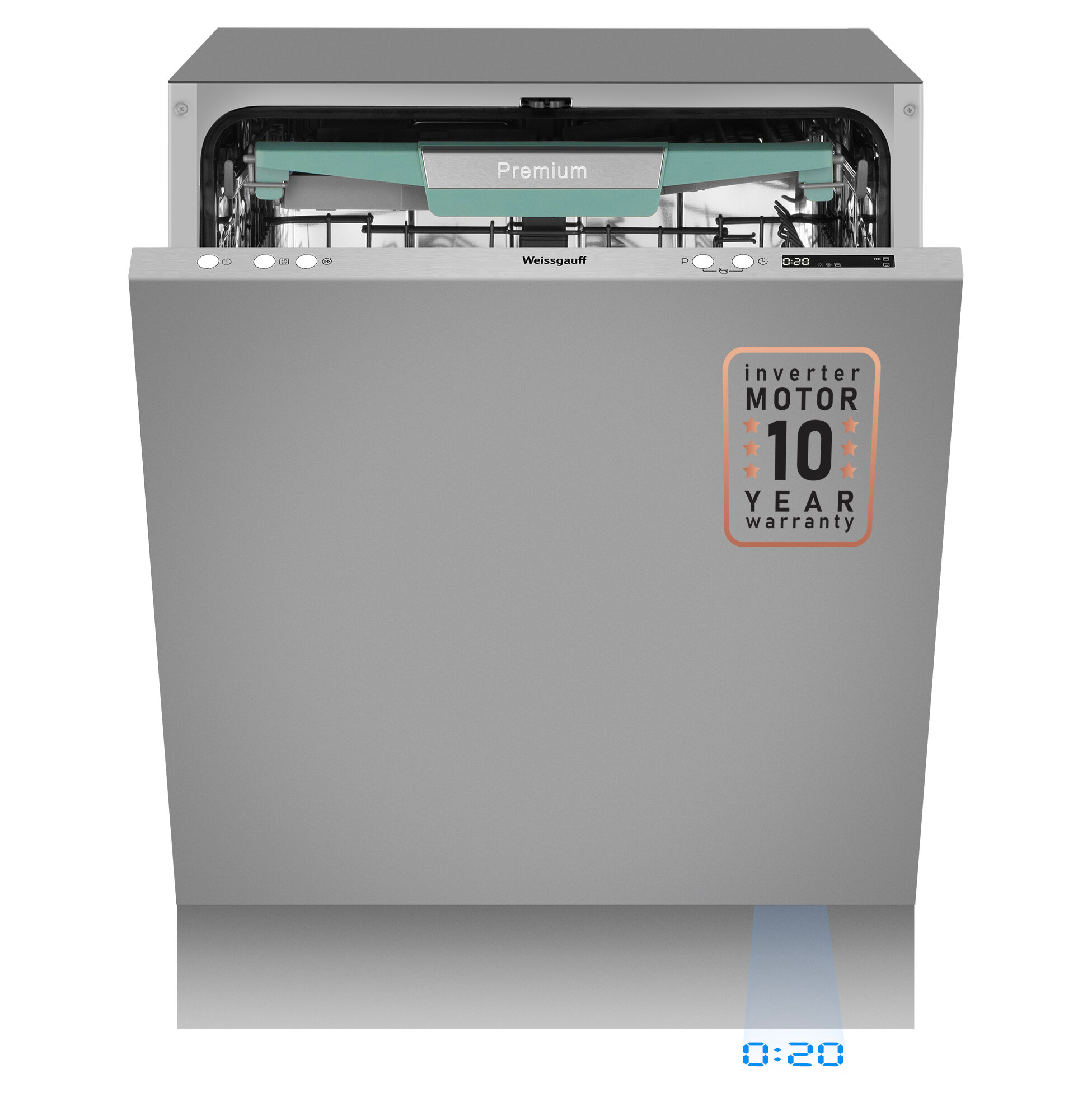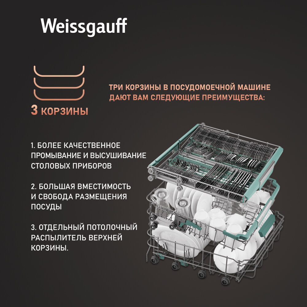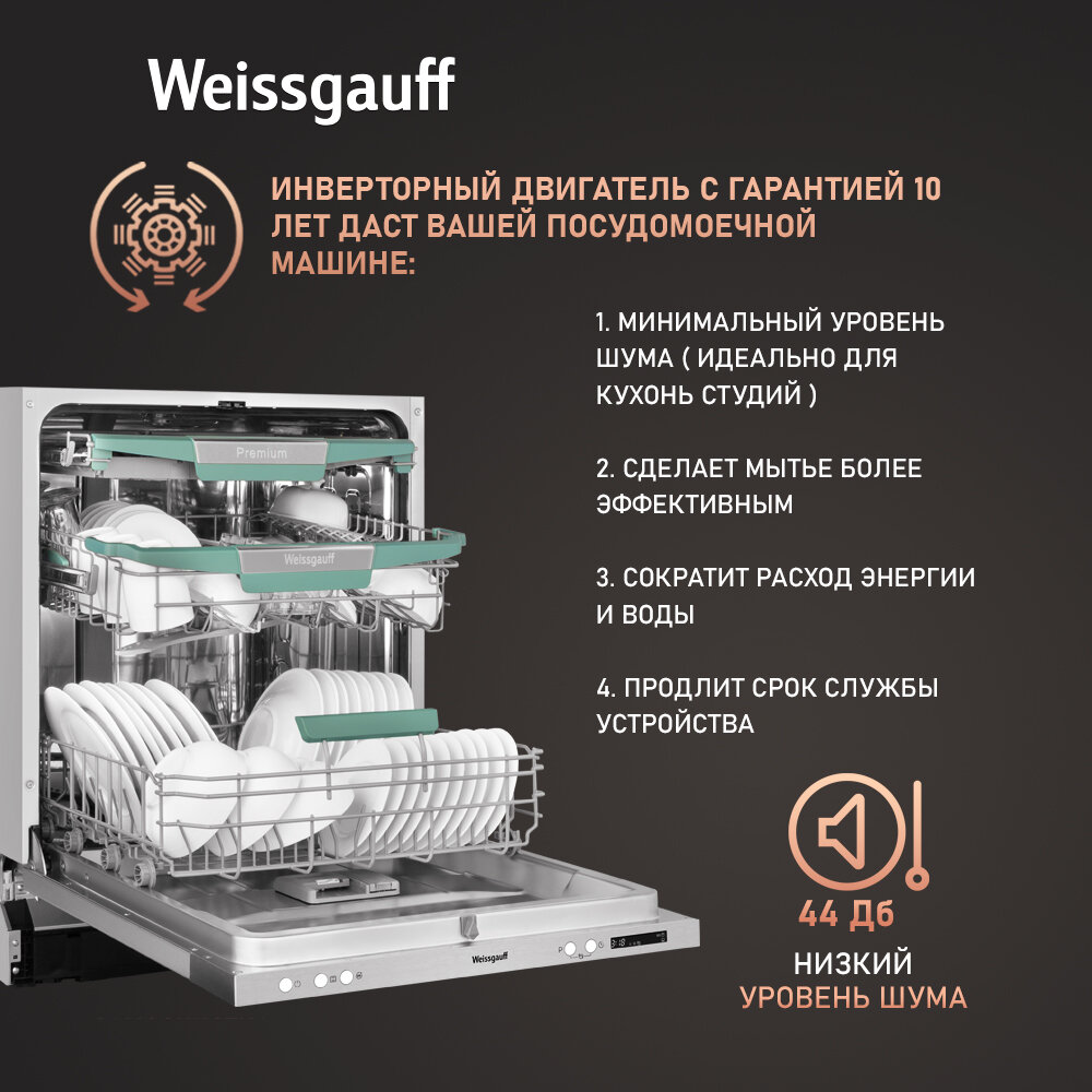 Встраиваемая посудомоечная машина с проекцией времени на полу, авто-открыванием и инвертором Weissgauff BDW 6075 D Inverter AutoOpen Timer Floor,3 года гарантии, 3 корзины, 14 комплектов посуды, 8 программ, дозагрузка посуды, таймер