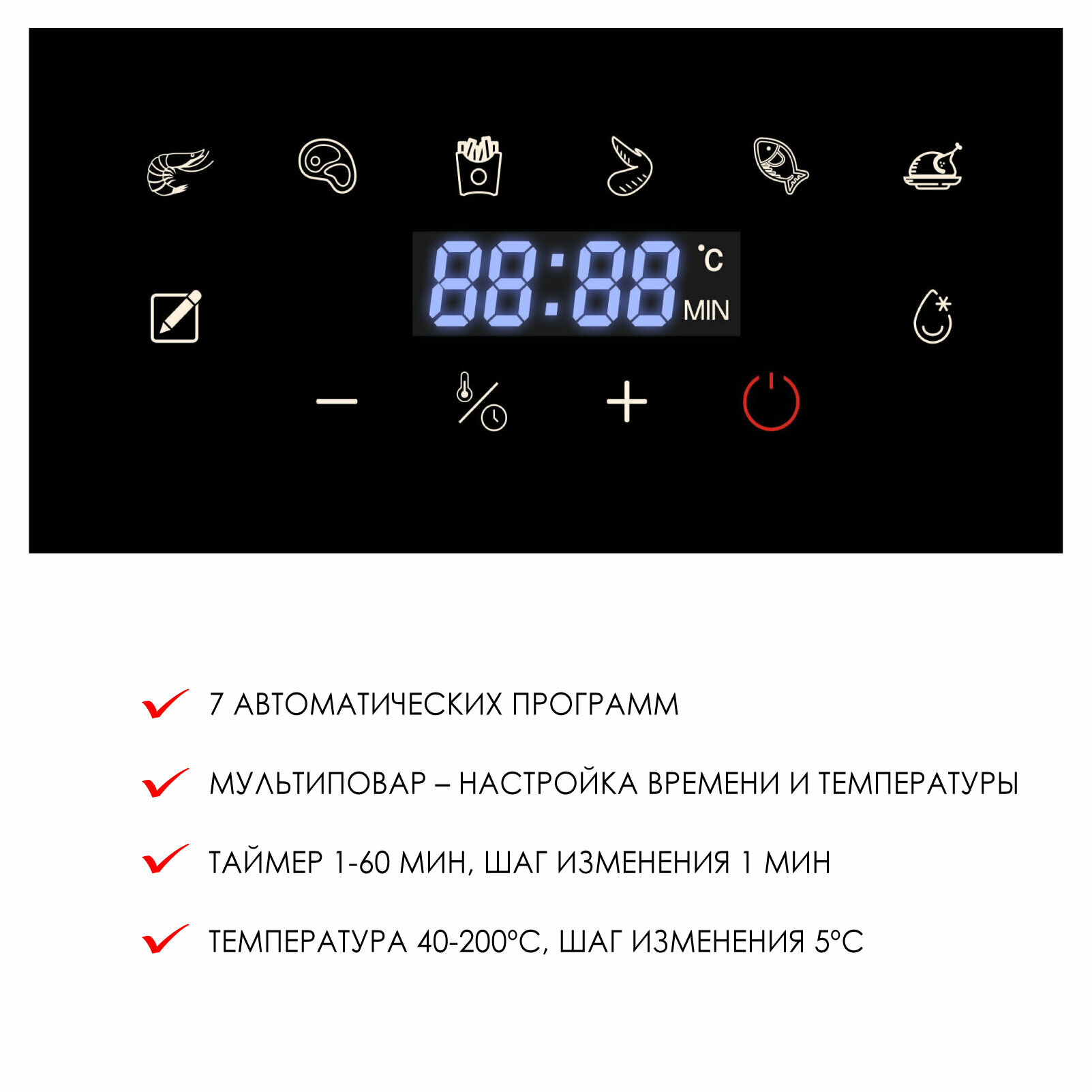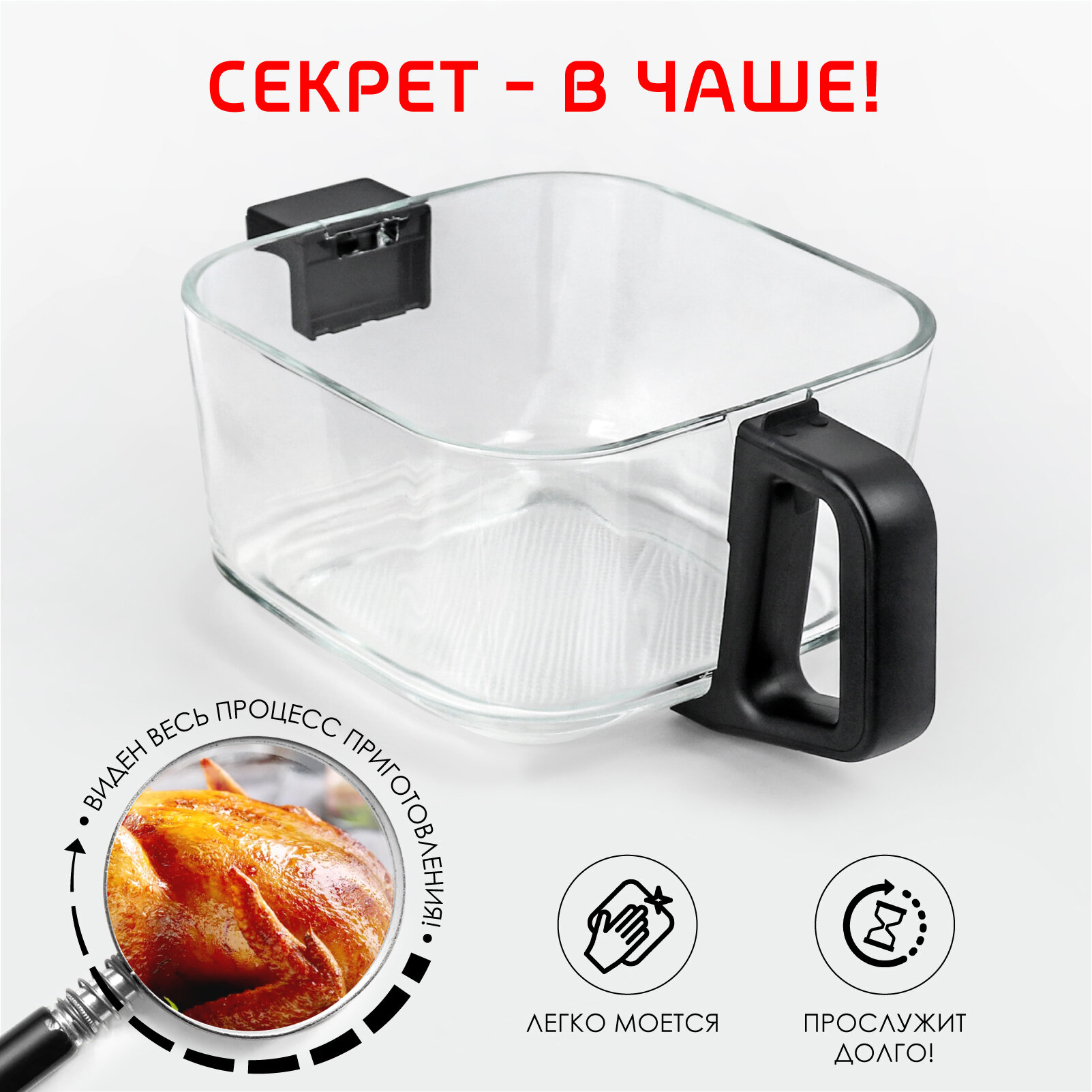 Аэрогриль Hotter HX-533 бело/черный, объем стеклянной чаши 5,5 литров, 7 автопрограмм и регулировка времени и температуры