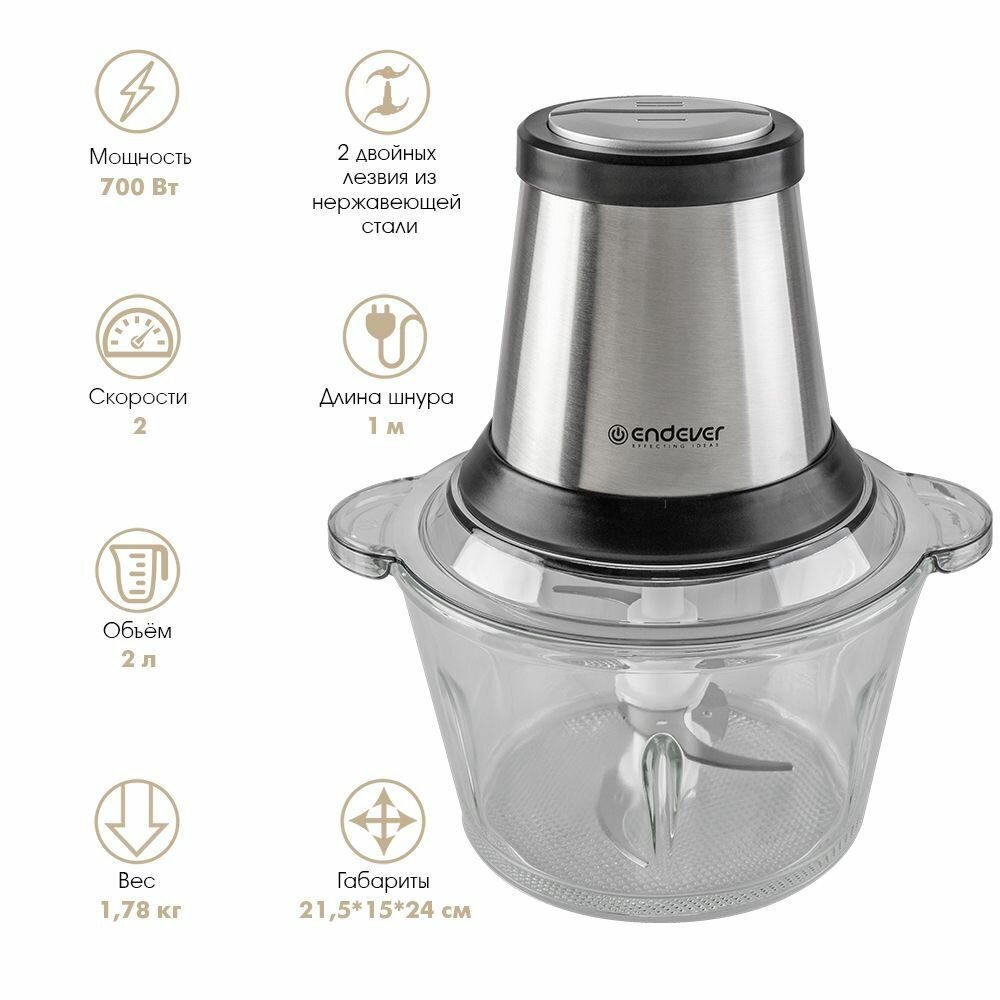 Купить Измельчитель кухонный электрический ENDEVER SIGMA-131 / 700 Вт / 2 литра