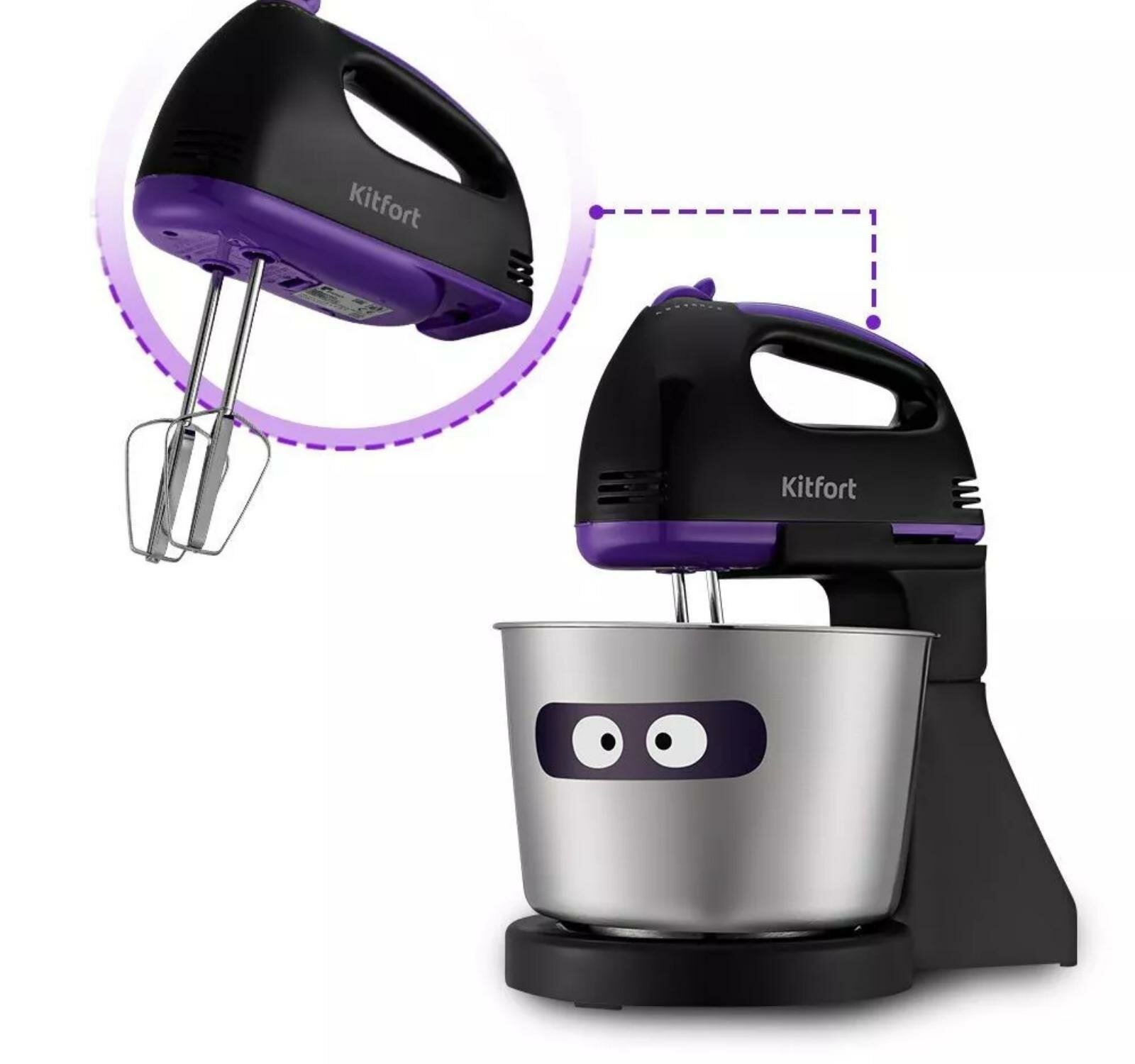 Миксер ручной Kitfort КТ-3412 100Вт черный/фиолетовый интересное: