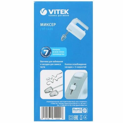 Миксер VITEK VT1420 МС, 600 Вт, 4 насадки, 5 скоростей