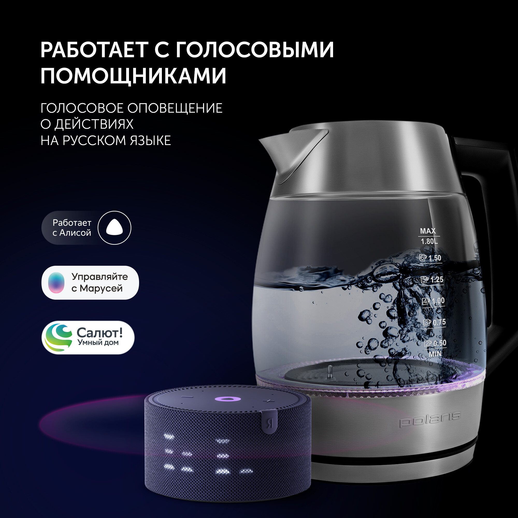 Чайник электрический Polaris PWK 1841CGLD WI-FI IQ Home стеклянный тихий 1.8 л интересное: