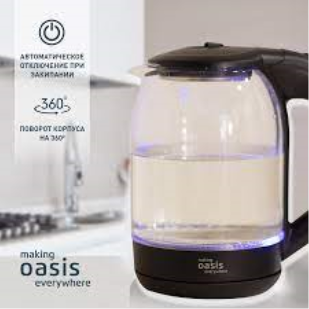 Чайник Oasis K-8GI 2000вт 1,8л, стекло, бежевый