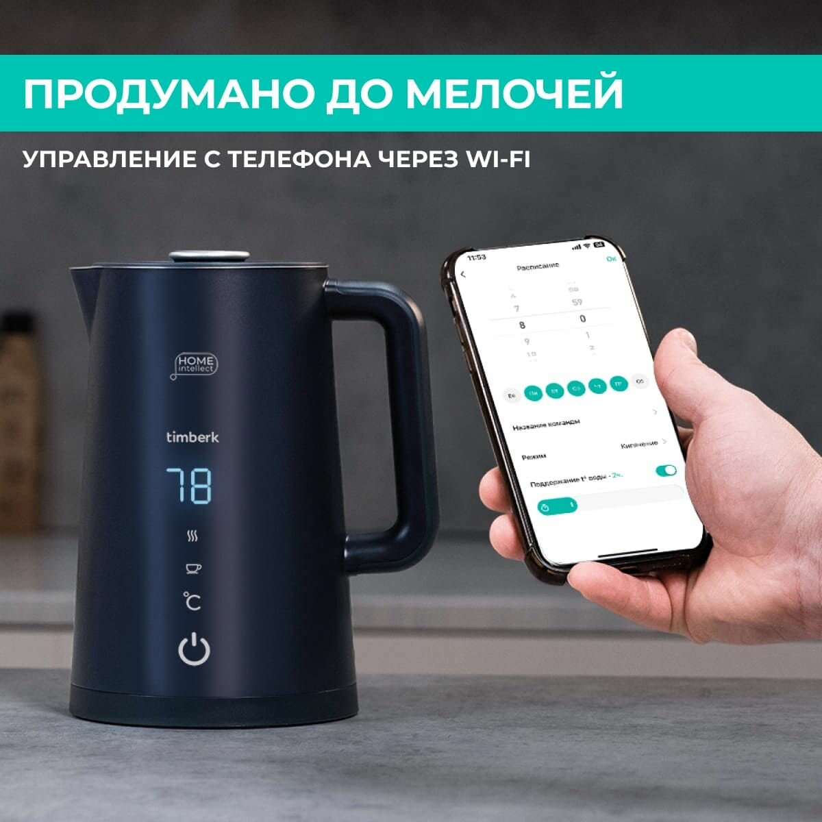 Чайник электрический Timberk T-EK21S103WF с Wi-Fi управлением и поддержанием температуры