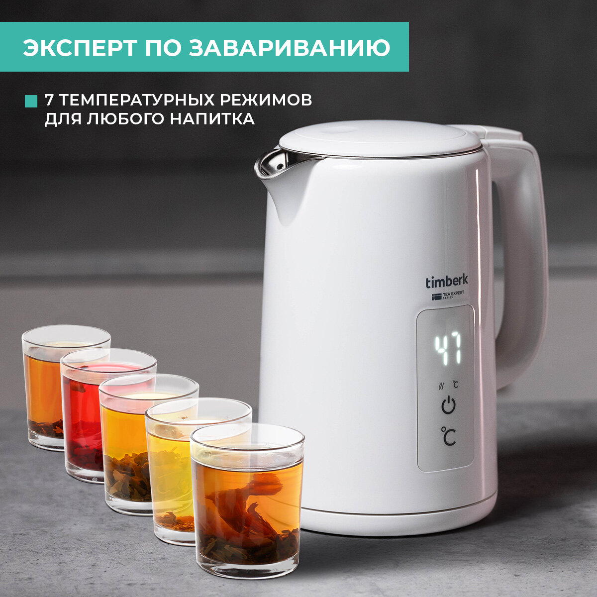 Электрический чайник 1.5 л Timberk T-EK21S02 с выбором температурных режимов интересное: