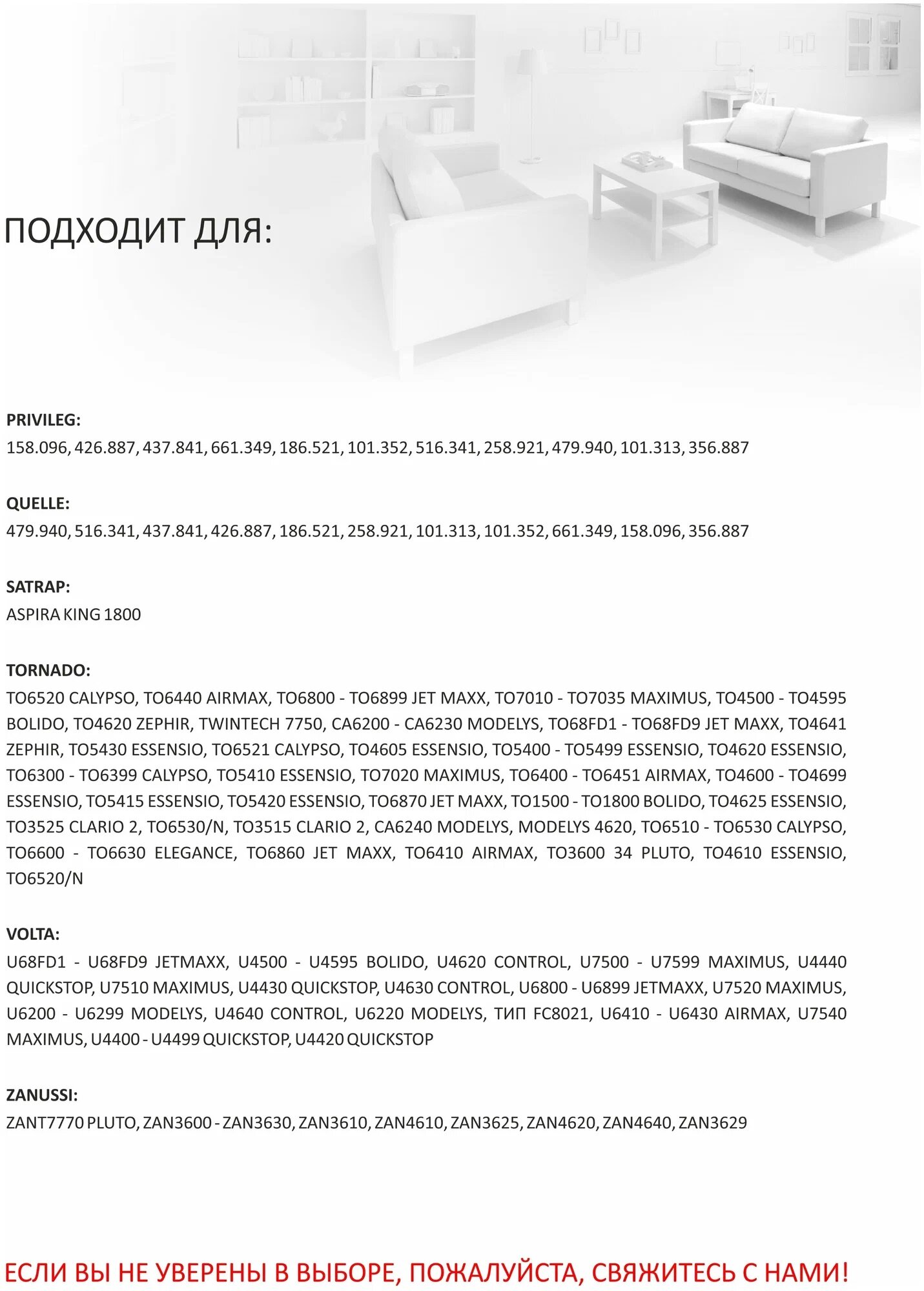 | Производитель совместимого пылесоса | AEG, ARNICA, BORK, Electrolux, Elenberg, Hanseatic, Philips, Privileg, QUELLE, Volta, Zanussi |