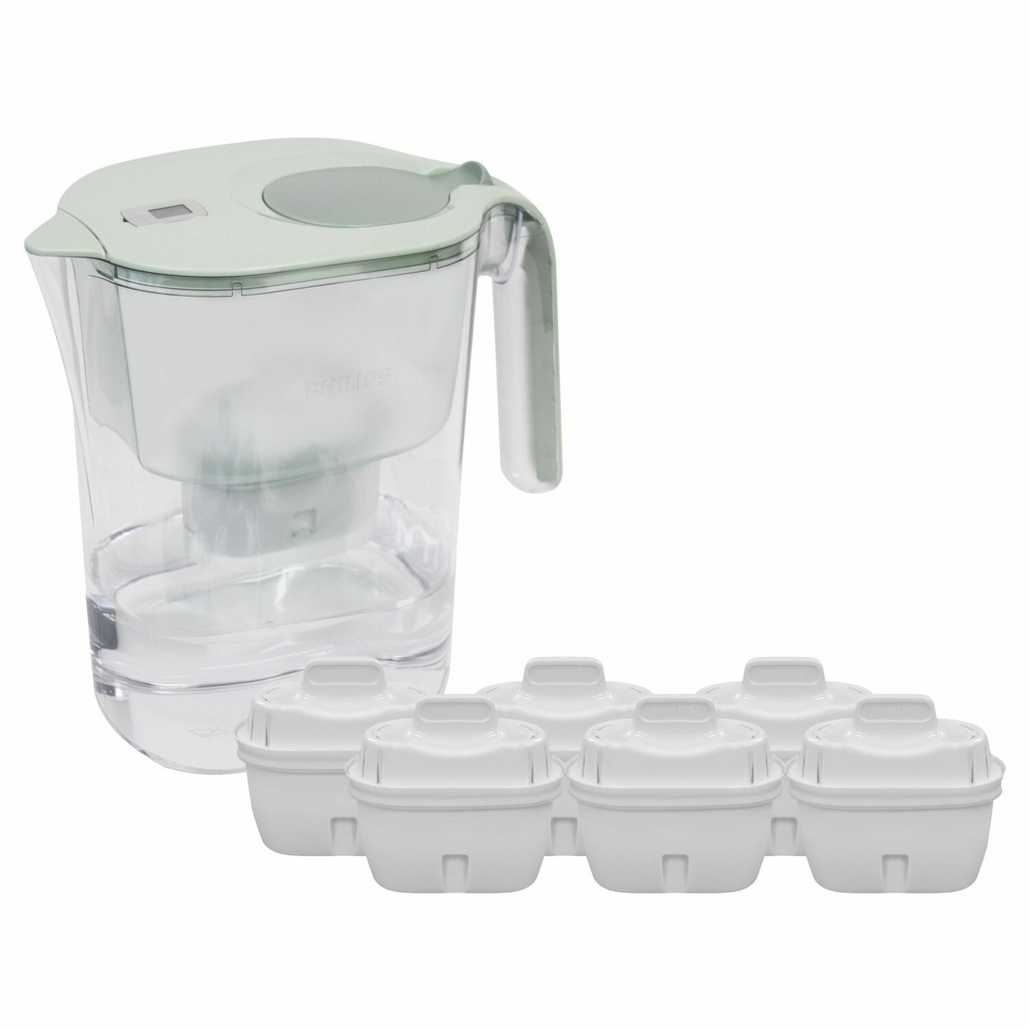 Купить Комплект: Кувшин для воды Philips AWP2938GNT/51, 4 литра с фильтром-картриджем в комплекте, цифровой таймер+ набор сменных картриджей Philips AWP212/51, 6 шт